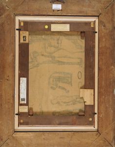 Sul verso: etichetta e timbri Galleria Lorenzelli, Milano. Etichetta Galleria La Medusa, Roma. Etichetta Grosse kunstausstellung Munchen 1957 und Ausstellung italienischer Kunst von 1910 bis zur Gegenwart. Timbri Collezione Cesare Toci.