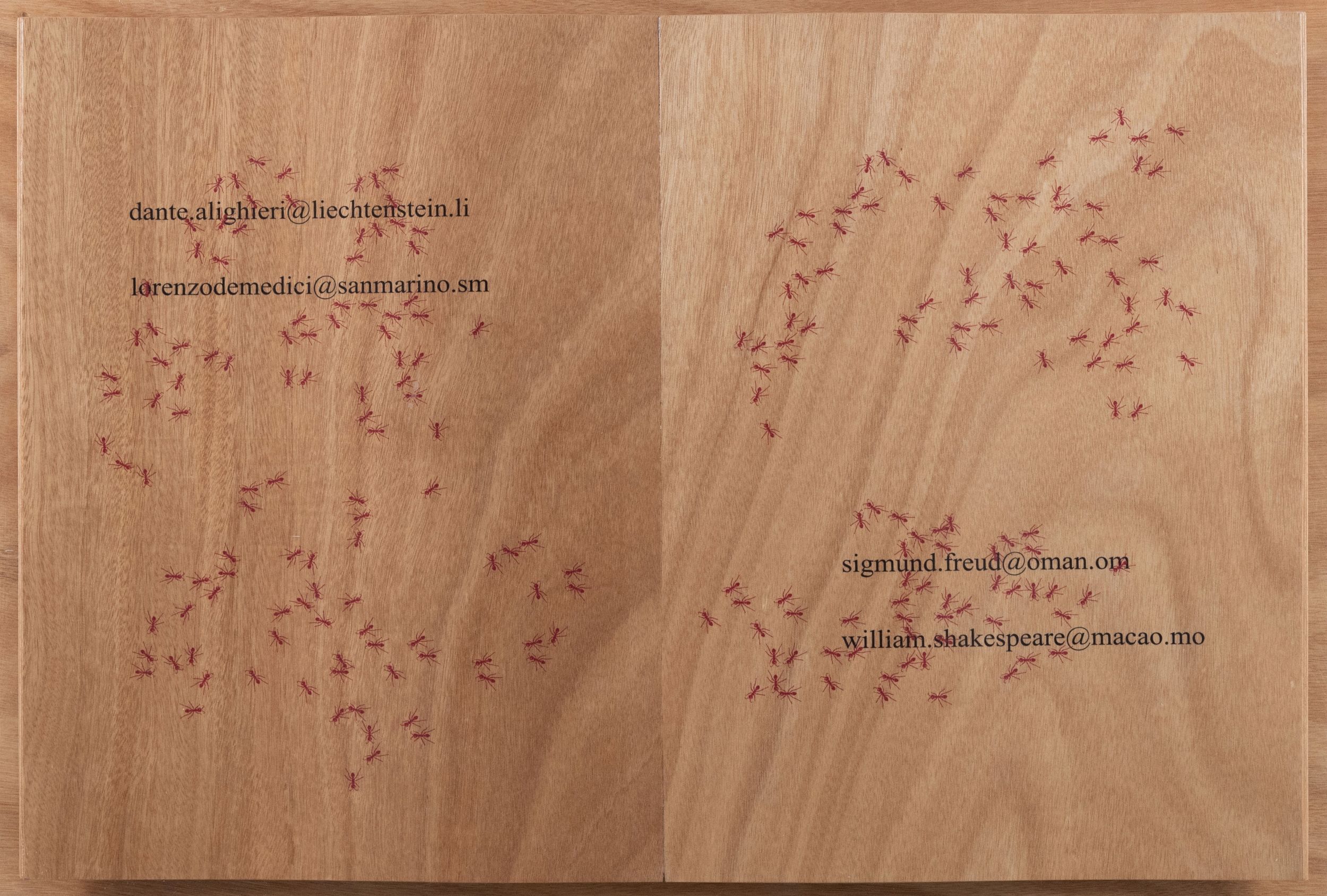L'uso degli insetti è un elemento di naturalità che l'Artista considera come cancellature mobili in grado di relazionarsi bene con i testi, come avviene per le Api della Torah, lo scopo è di sviluppare un dialogo ampio e movimentato tra natura e cultura.