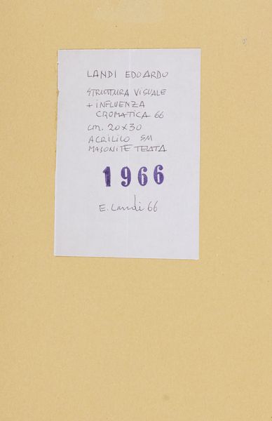 1966 Sul verso: etichetta dell'Artista con firma, data, titolo e descrizione.