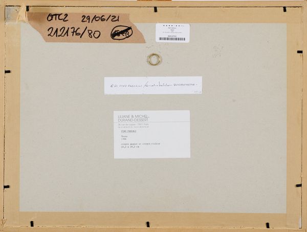 Sul verso: scritto di autenticità di Sandro Lodolo.Etichetta Liliane & Michel-Durand Dessert, Parigi, con descrizione.