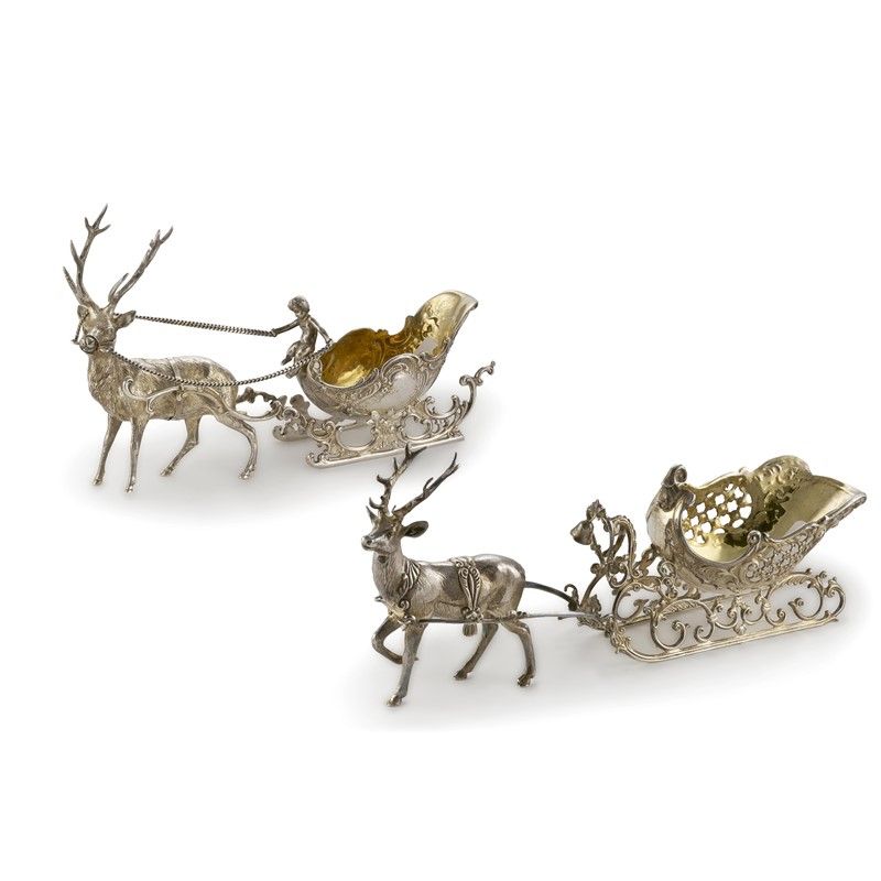 TWO STERLING SLEIGHS WITH REINDEER, GERMANY, 20TH CENTURY