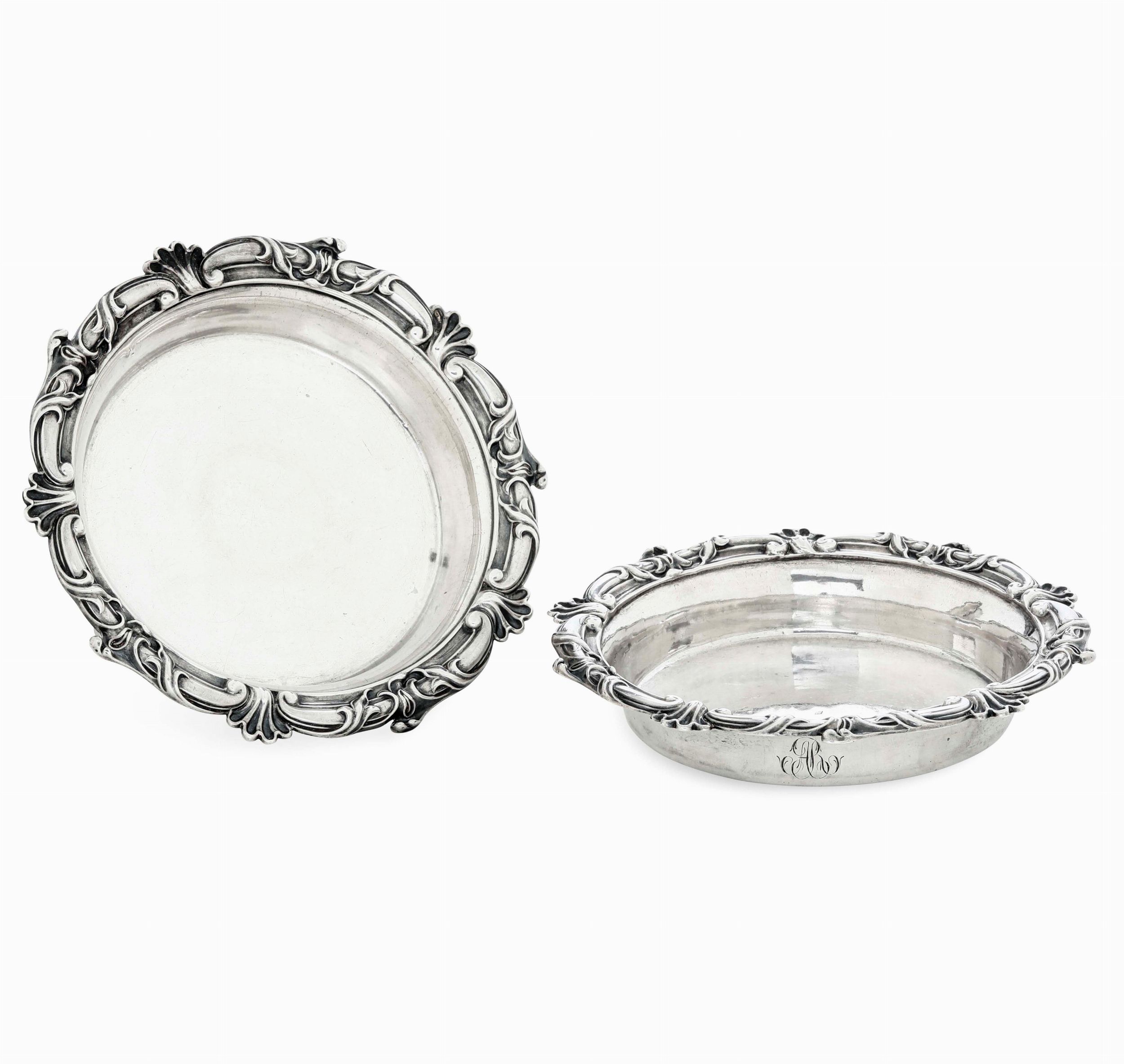 Due sottobottiglia. Francia, XX secolo. Bordo con decoro a volute e conchiglie, [..]