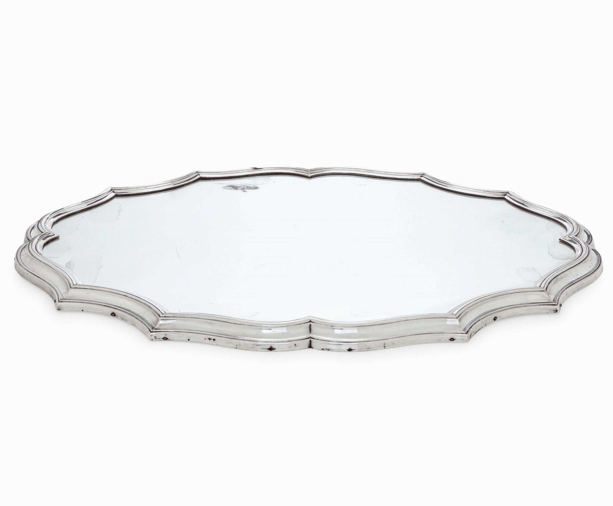 Presentoire a specchio e piccolo vassoio. Argenteria italiana del XX secolo.