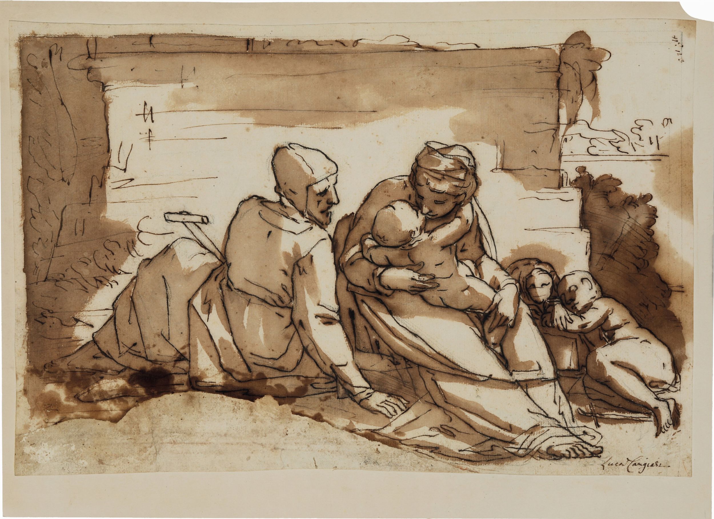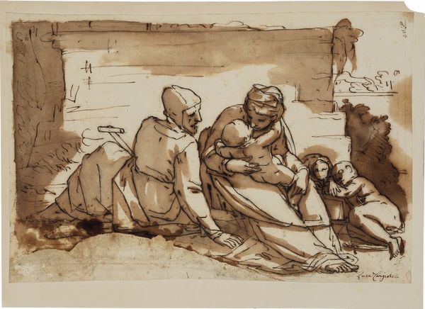 matita nera, penna, inchiostro bruno e acquerello su carta, Largh. 370 - Alt. 250 mm