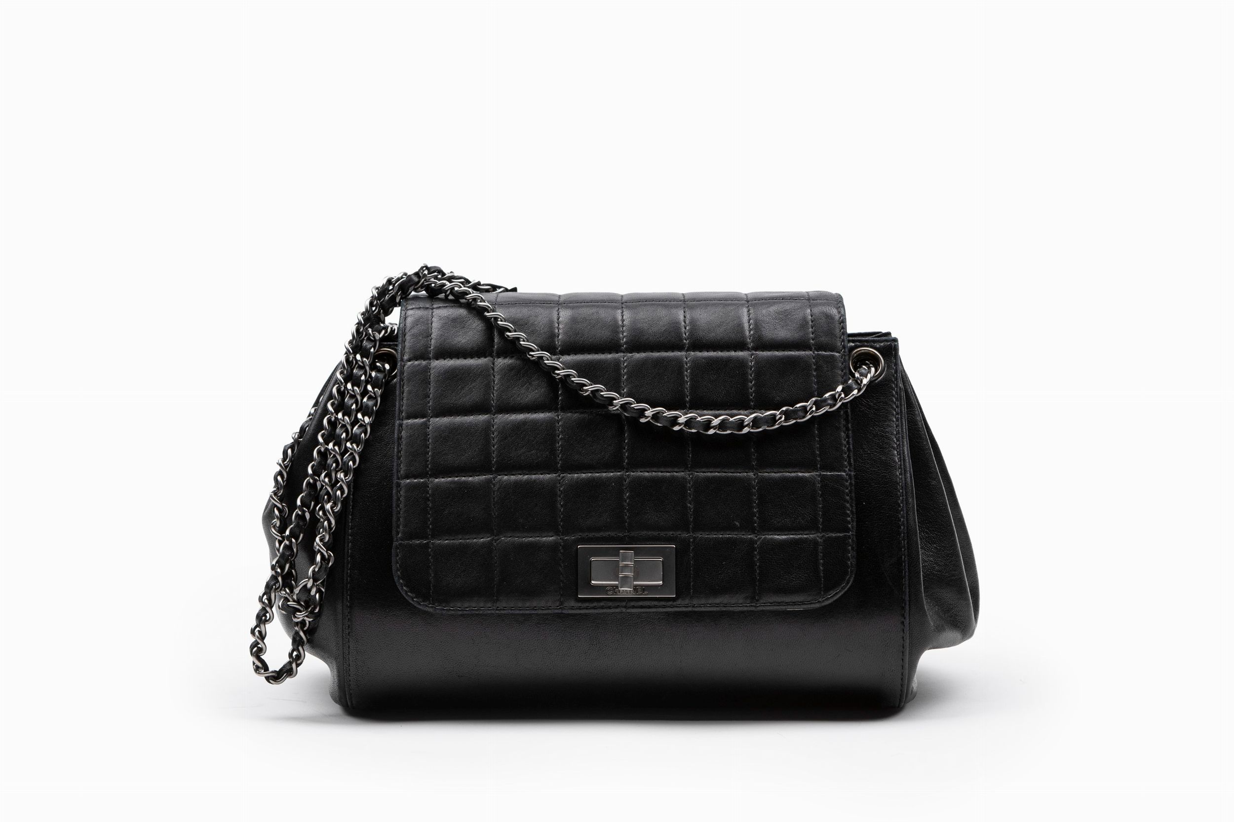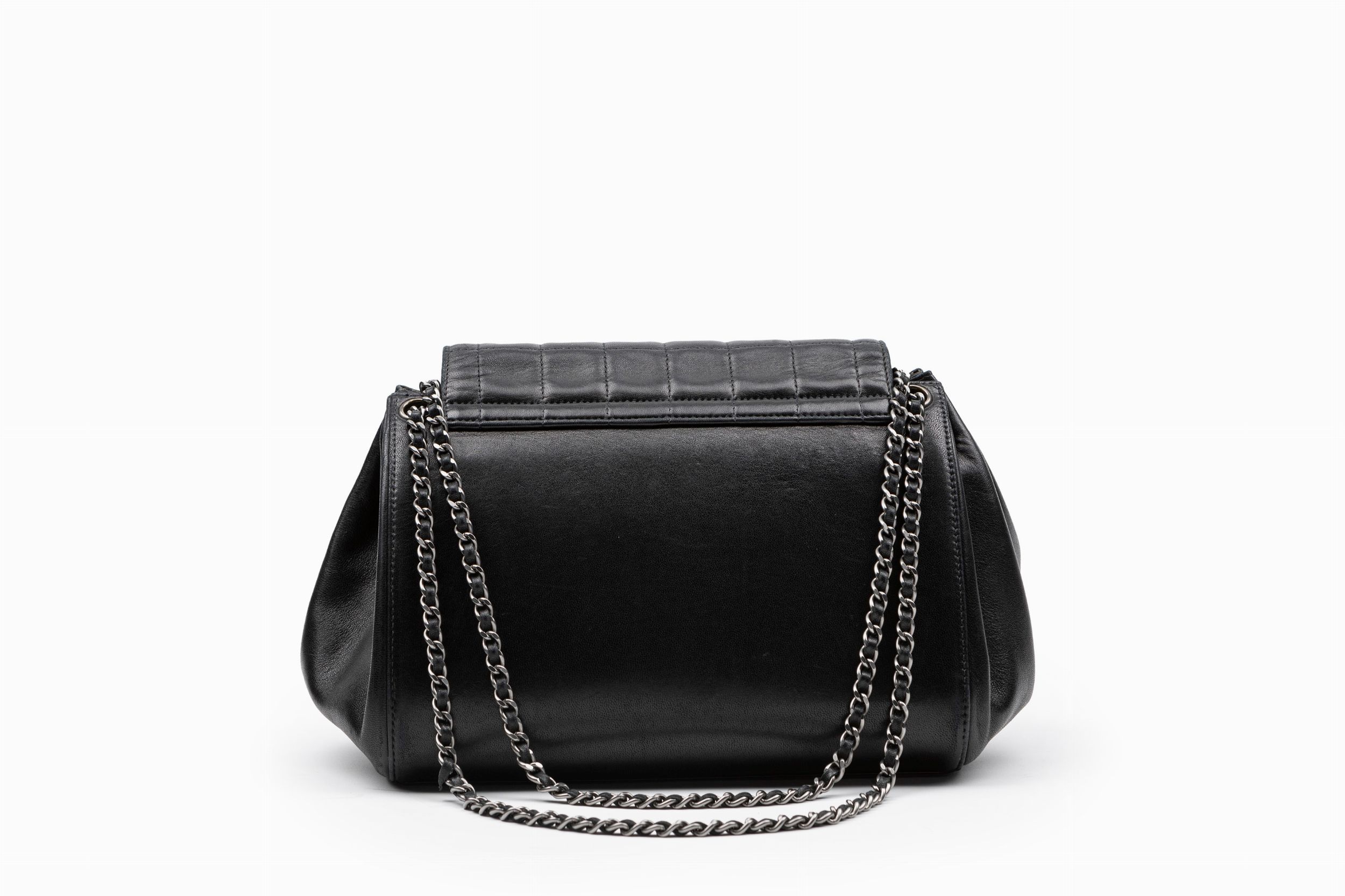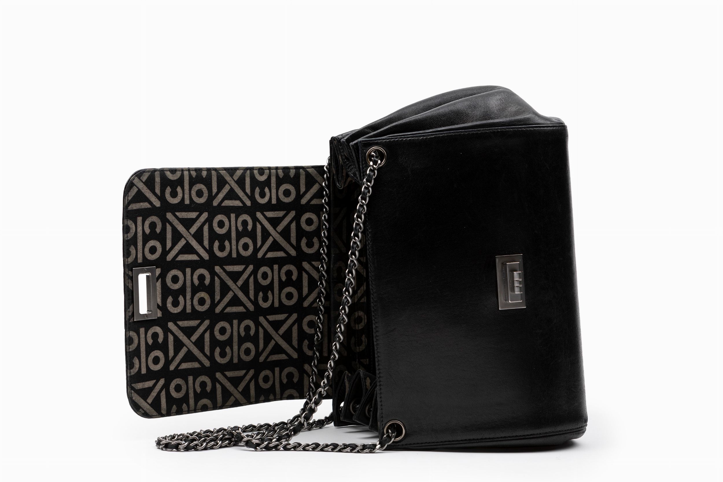 2000 in nappa color nero con tracolla a catena, dettagli in metallo brunito, cm 22, con sacchetto (difetti)