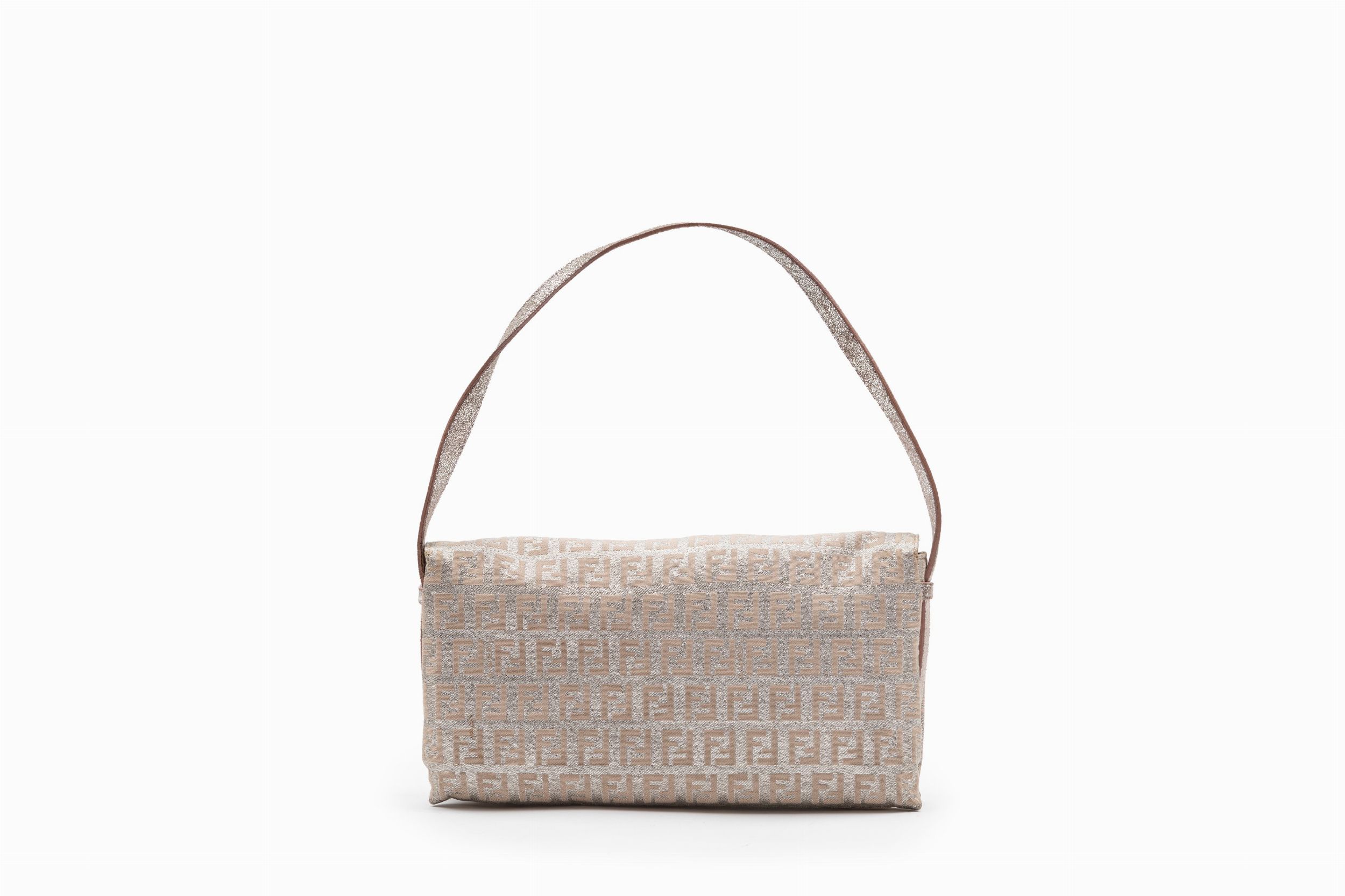 in tessuto logato bicolore rosa cipria e argento, dettagli in metallo dorato, cm 24 (lievi difetti)