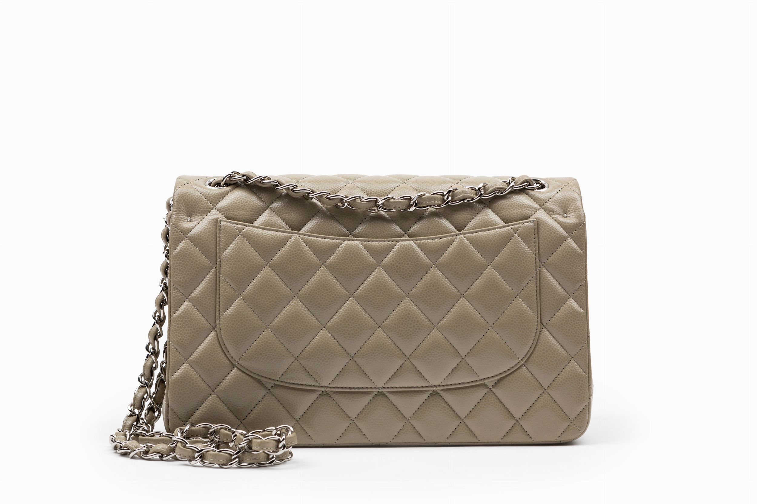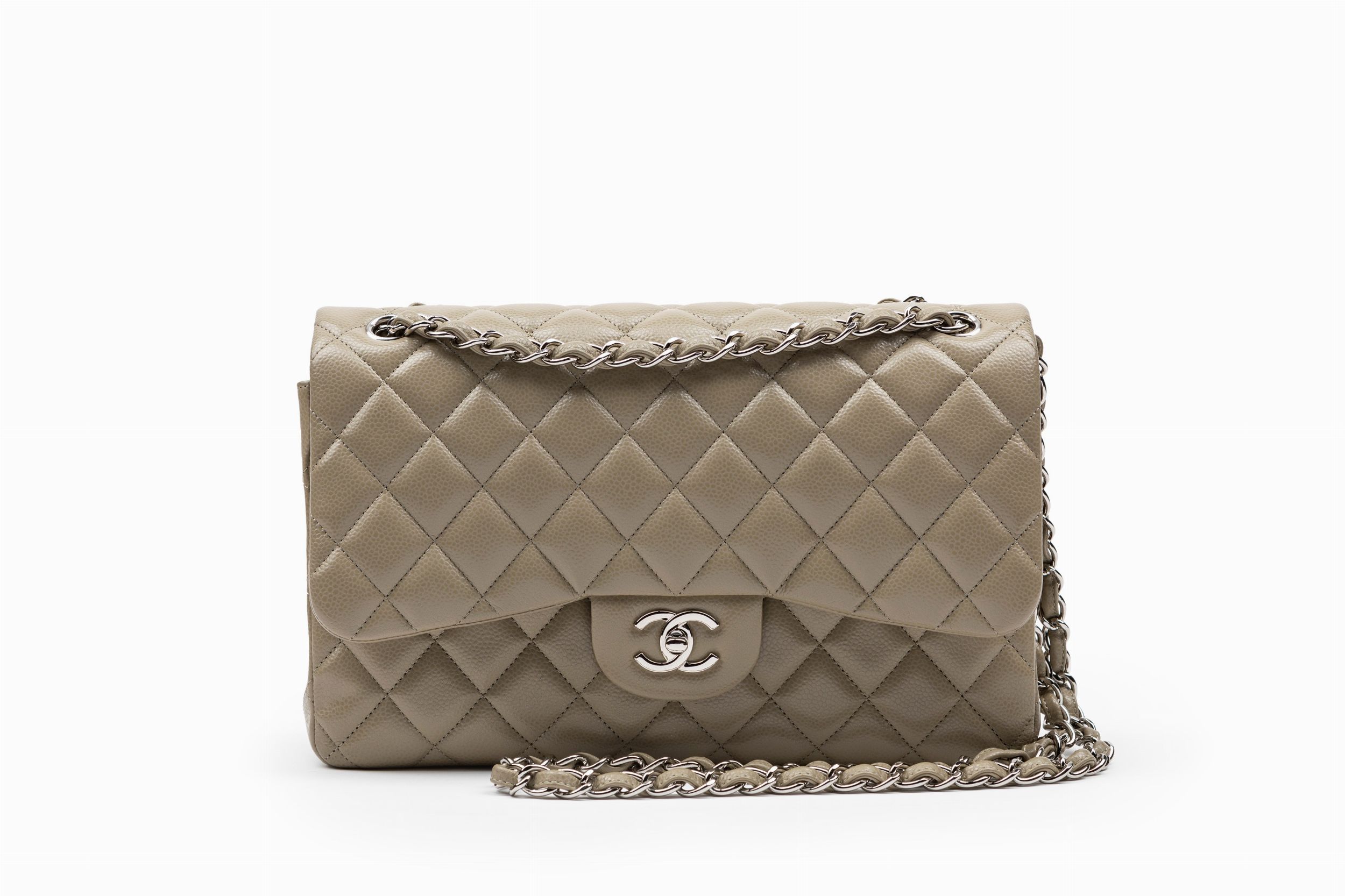 2014 in pelle caviar matelassé color tortora con tracolla a catena in metallo, cm 30, con sacchetto