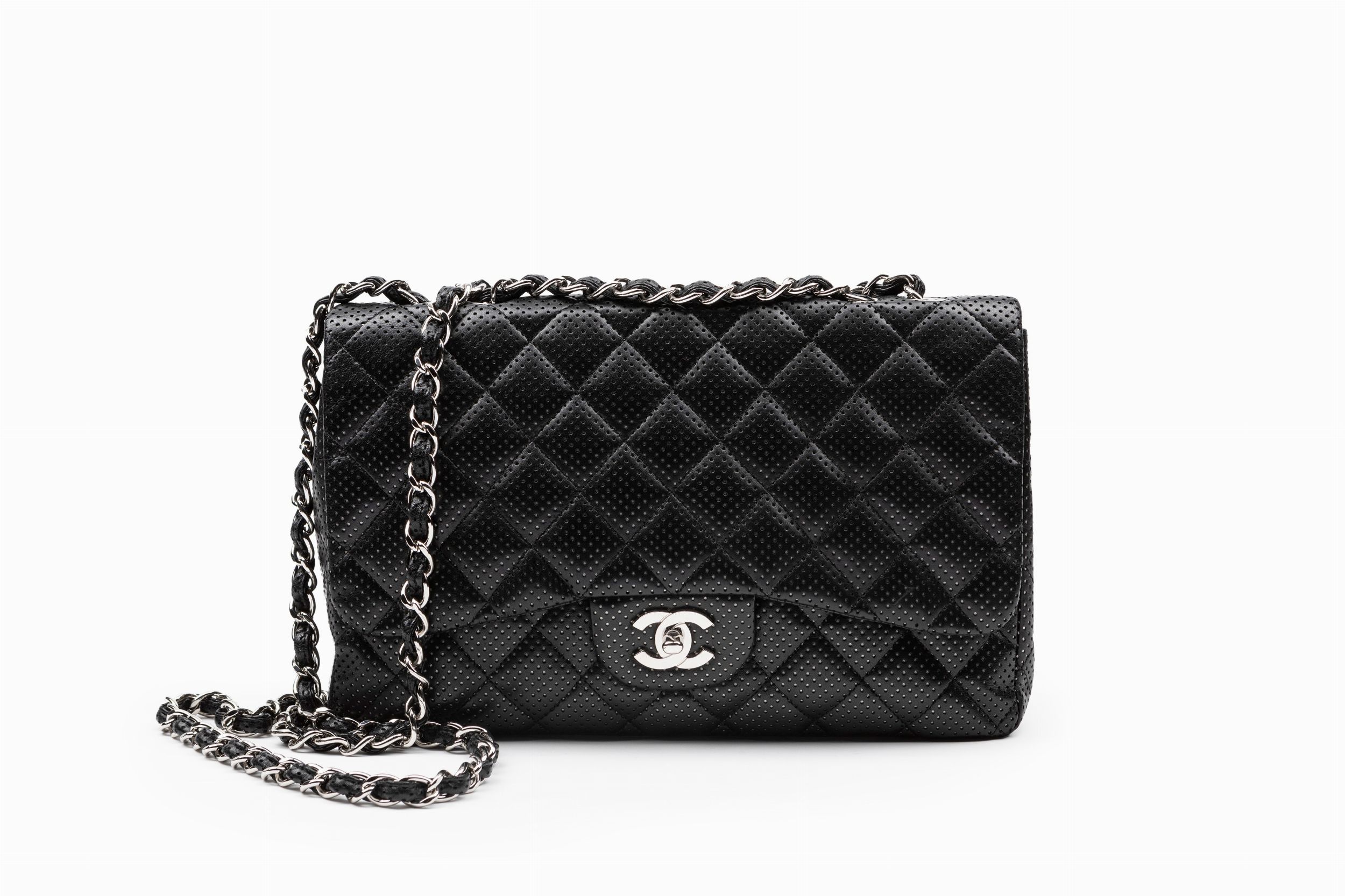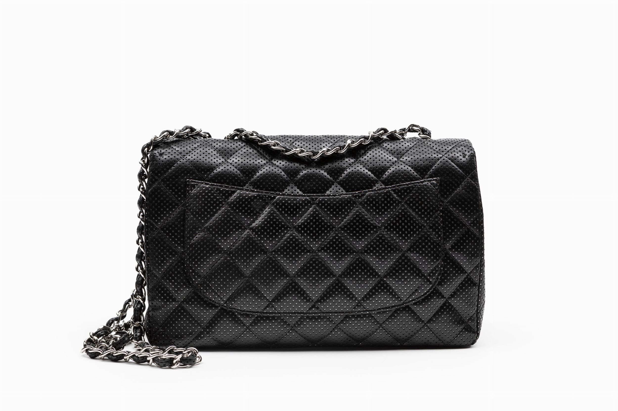 2006 in pelle matelassé traforata color nero, con tracolla a catena, cm 30, con sacchetto