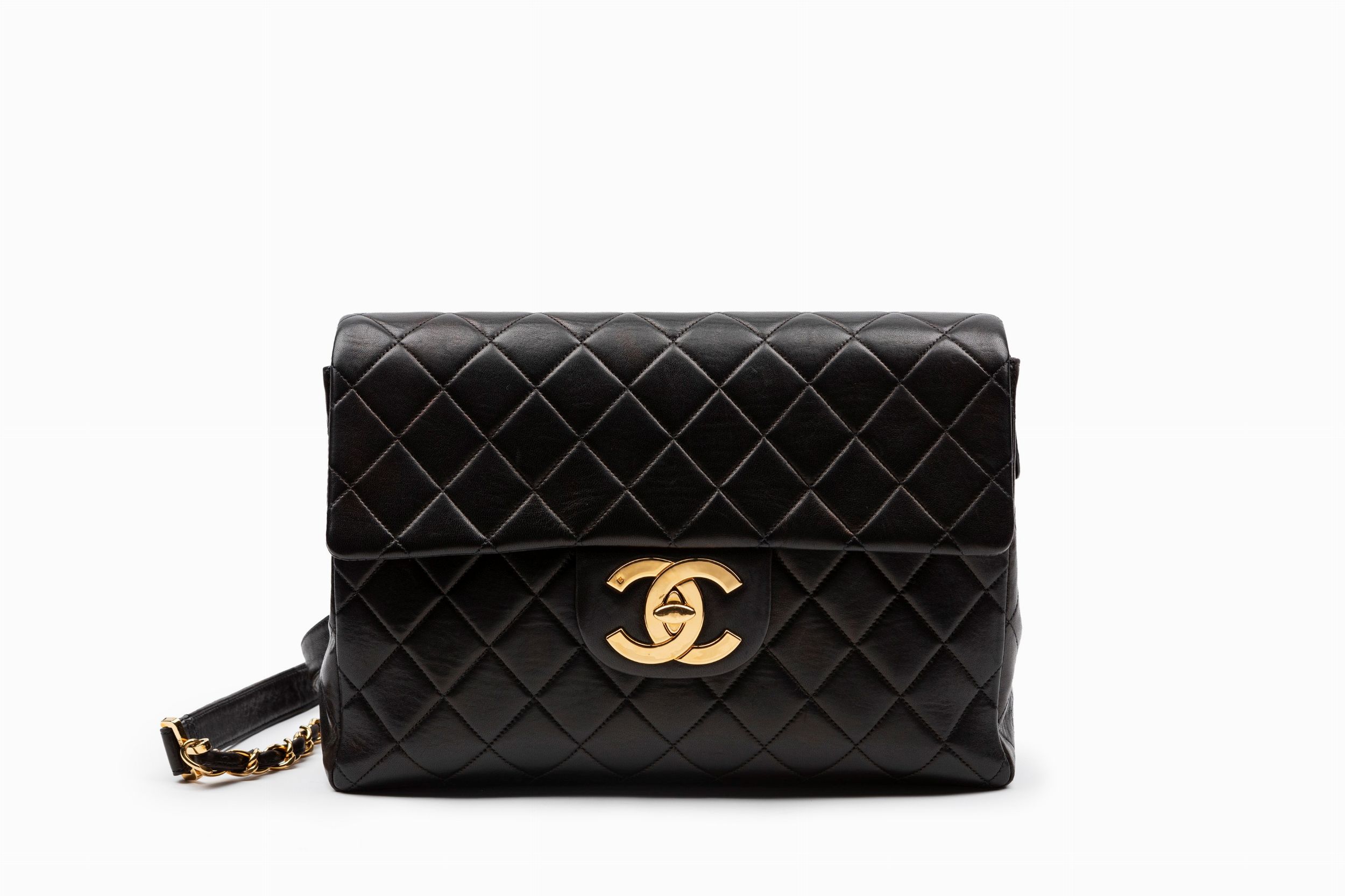 1994 in pelle matelassé color nero, dettagli in metallo dorato, cm 30, con sacchetto (lievi difetti)