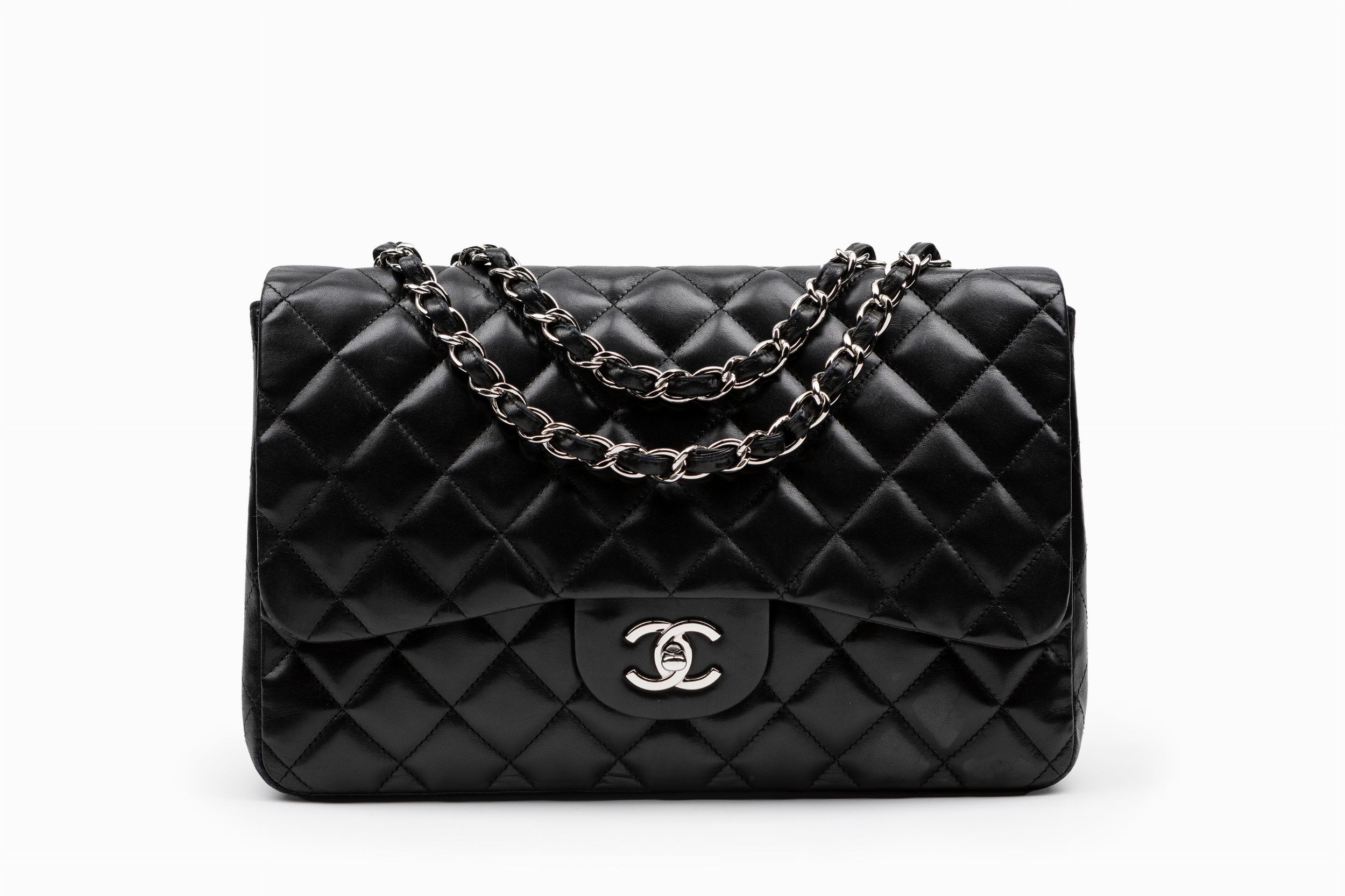 2009 in pelle matelassé color nero, tracolla a catena, cm 30, con sacchetto (difetti)