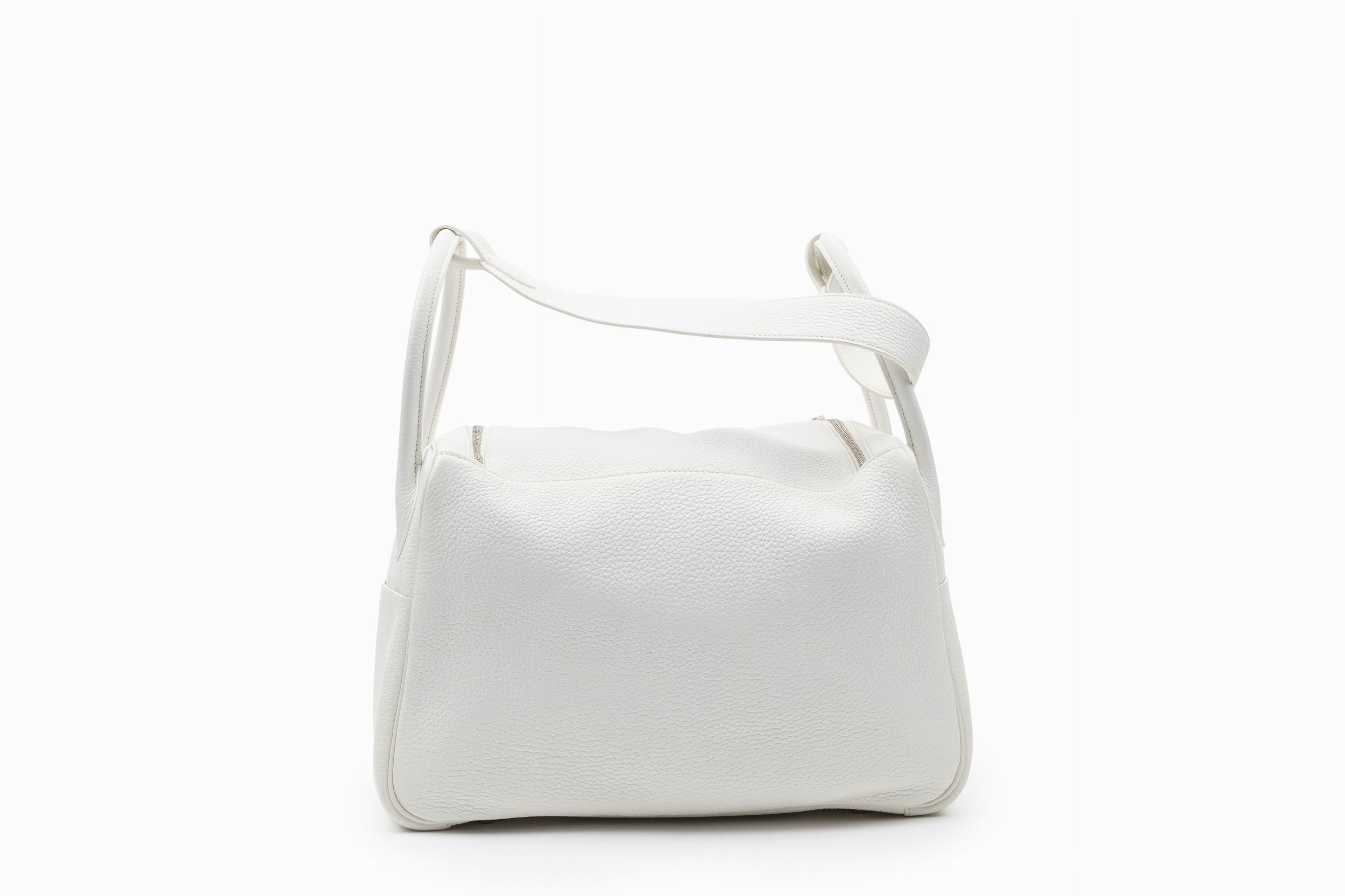 2016 in pelle togo color bianco, dettagli in palladio, cm 35, con sacchetto
