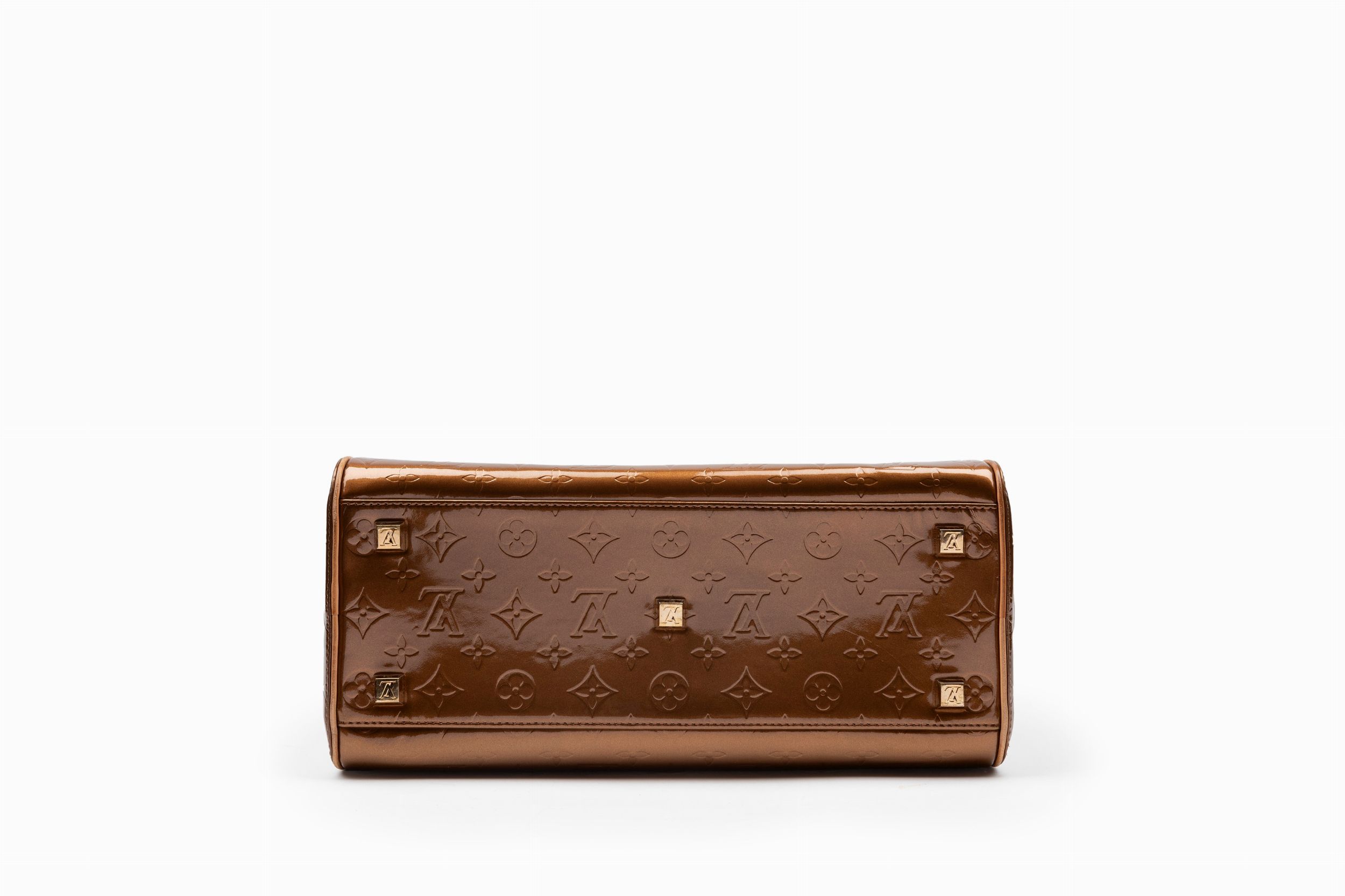 con doppi manici in monogram vernis color bronzo, dettagli in metallo dorato, cm 35, con sacchetto (difetti)