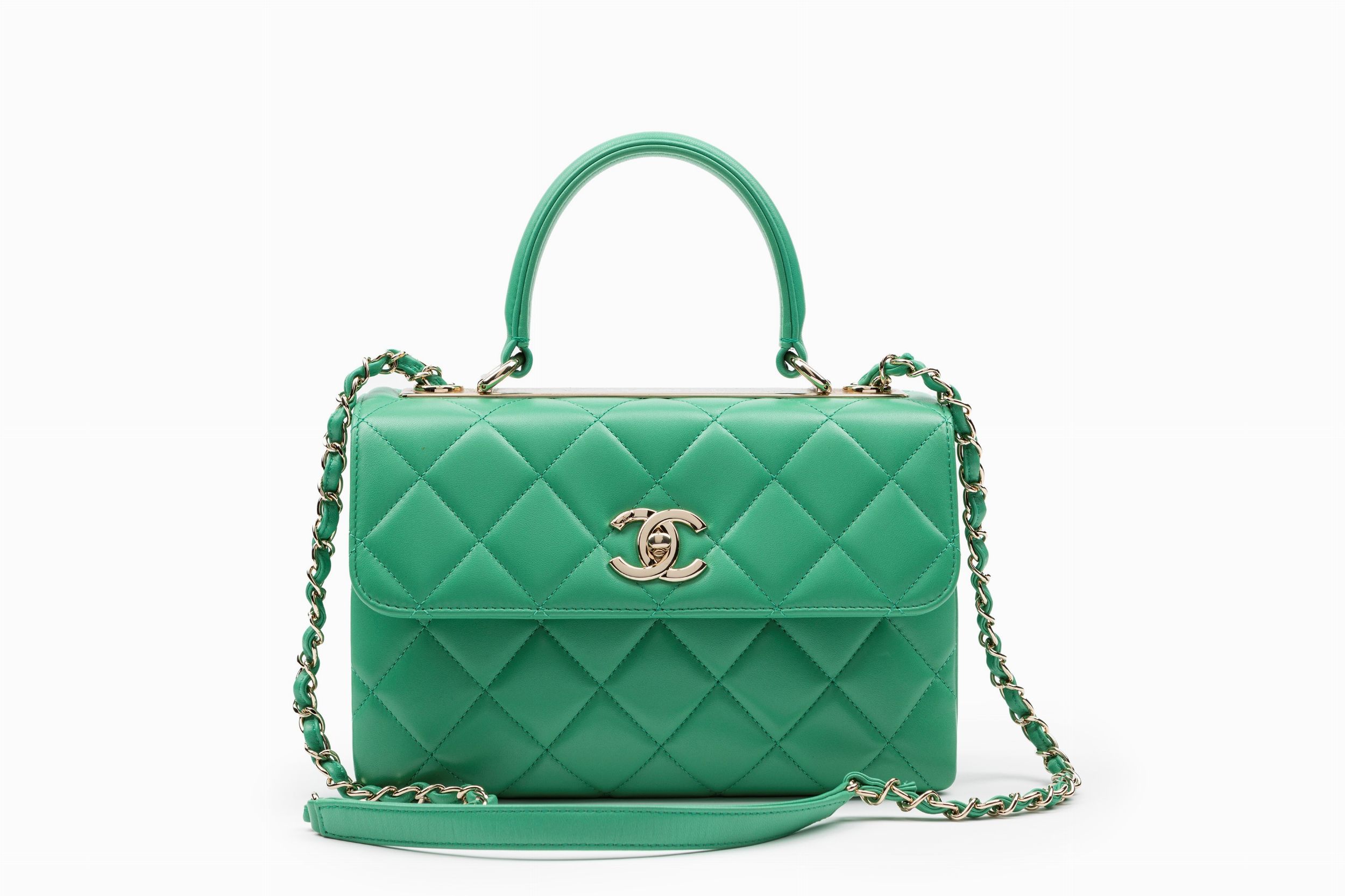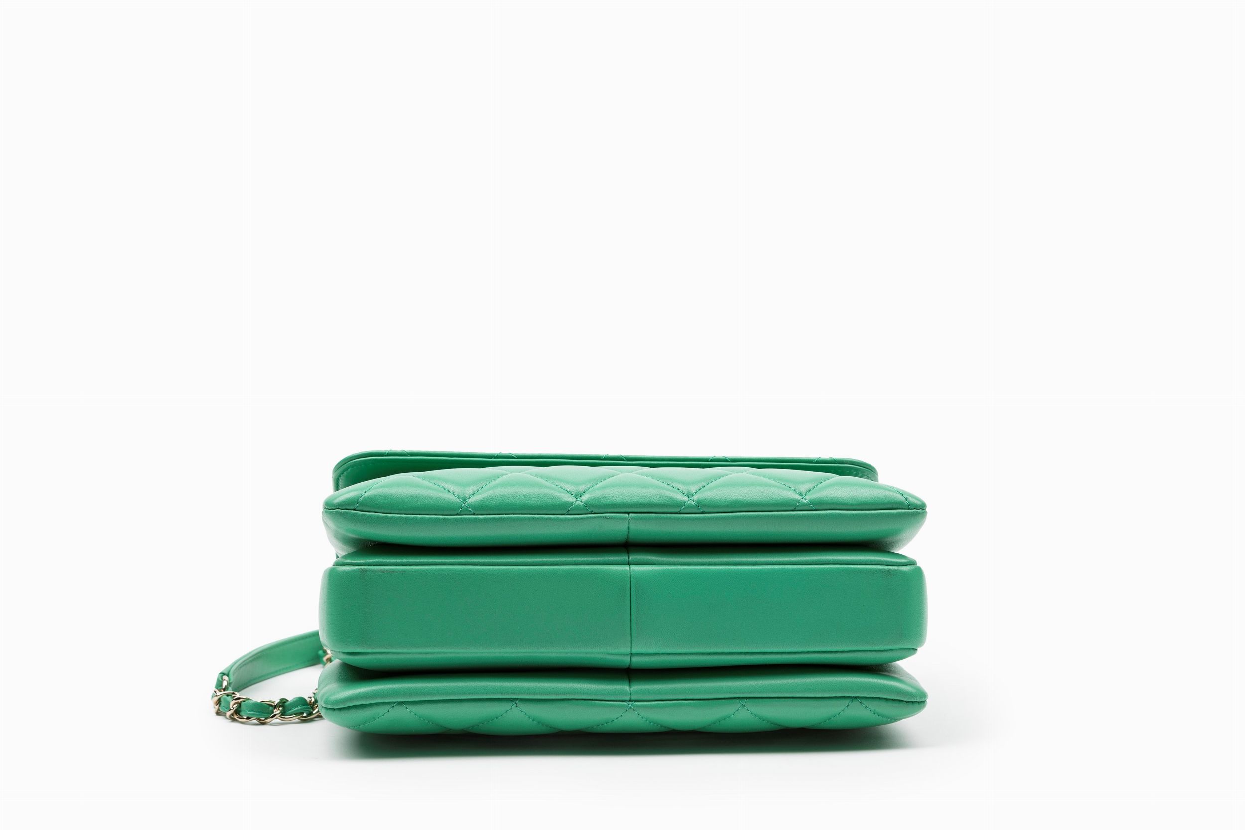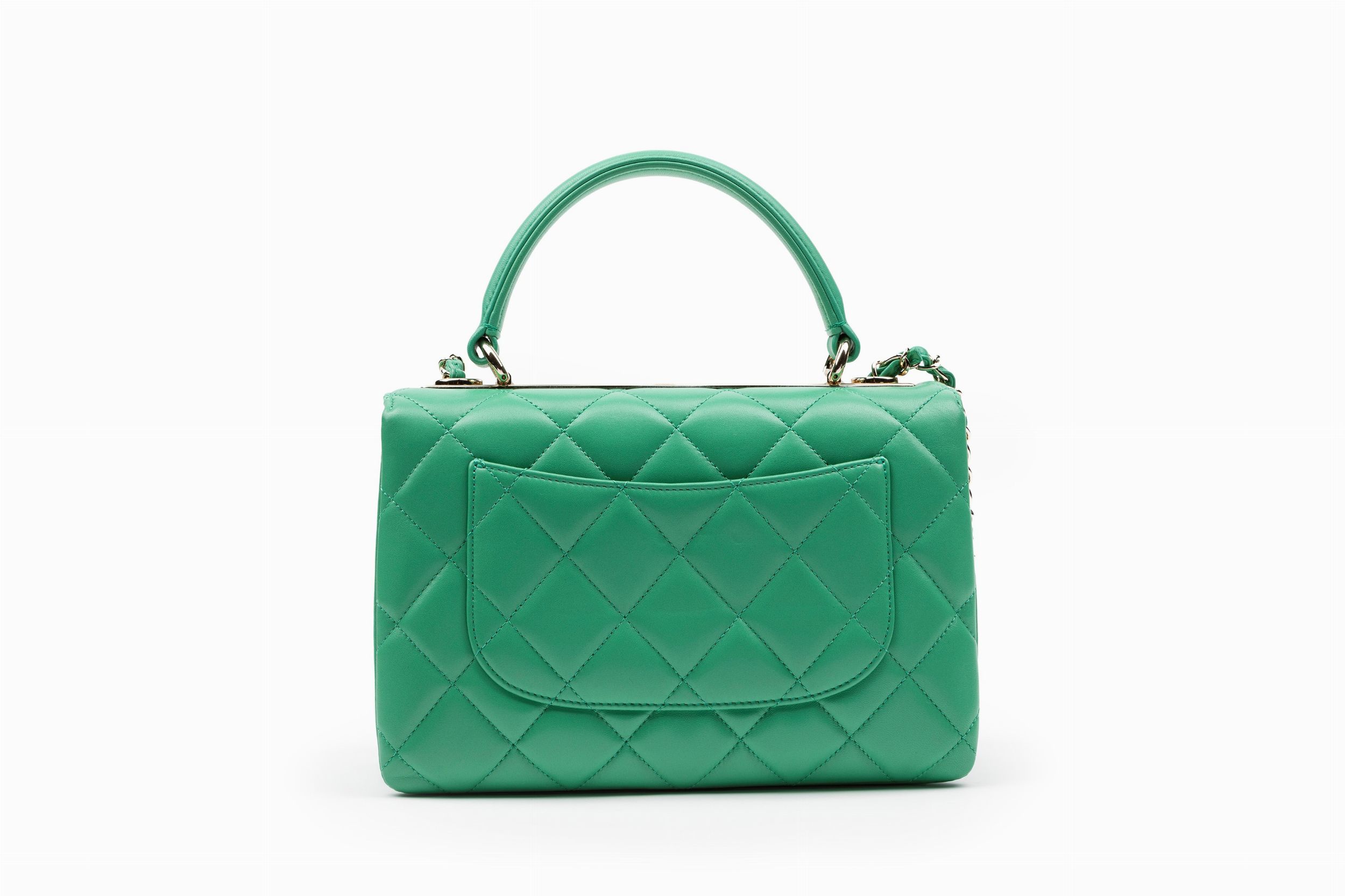 2017 in pelle matelassé color verde menta con tracolla staccabile, dettagli in metallo dorato, cm 24, con sacchetto