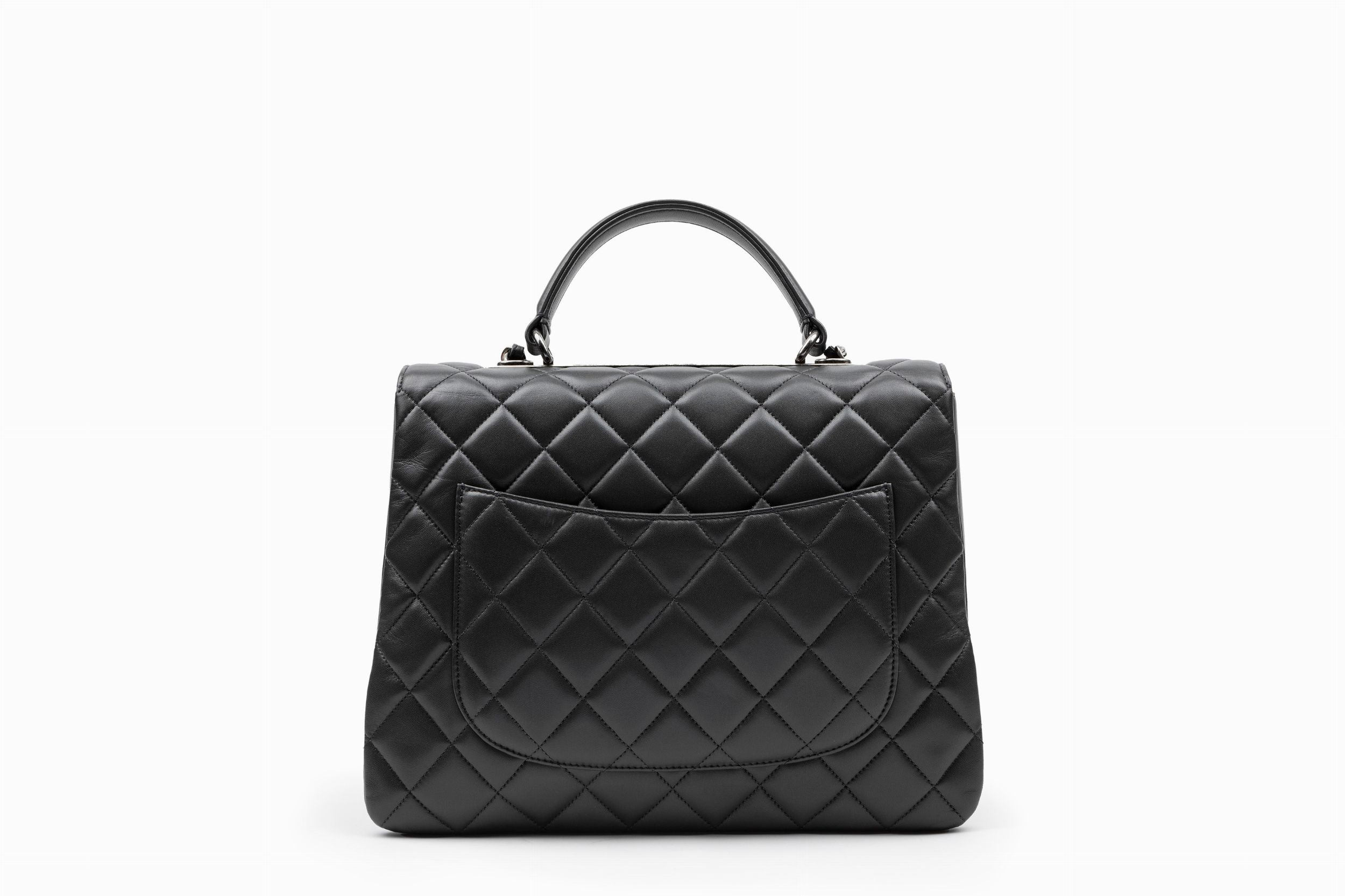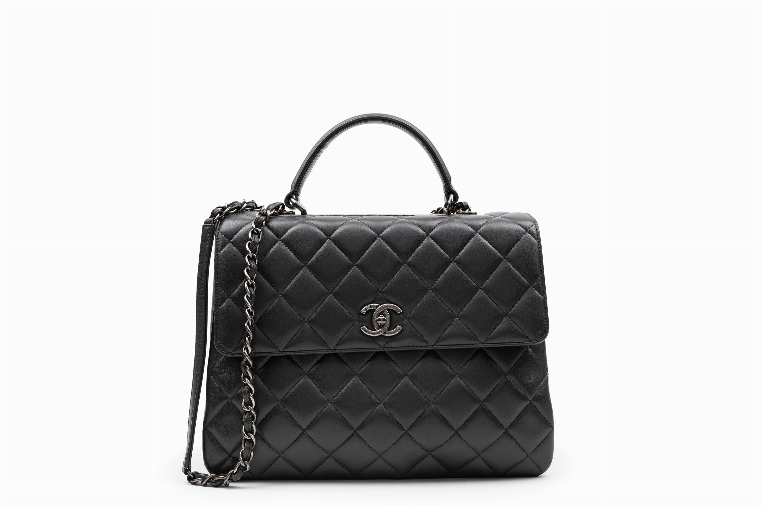 2015 in pelle matelassé color antracite con tracolla staccabile, dettagli in metallo brunito, cm 33