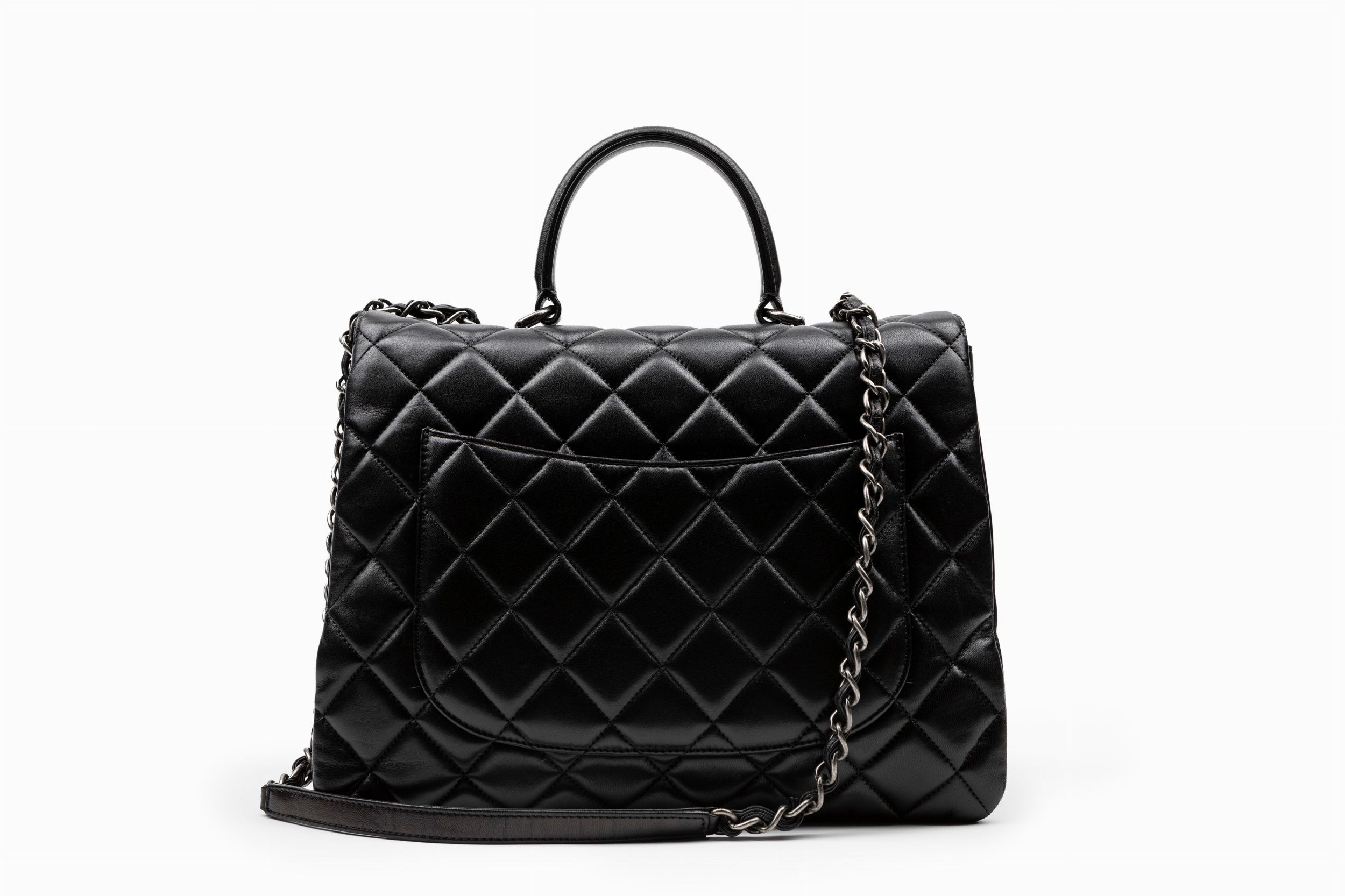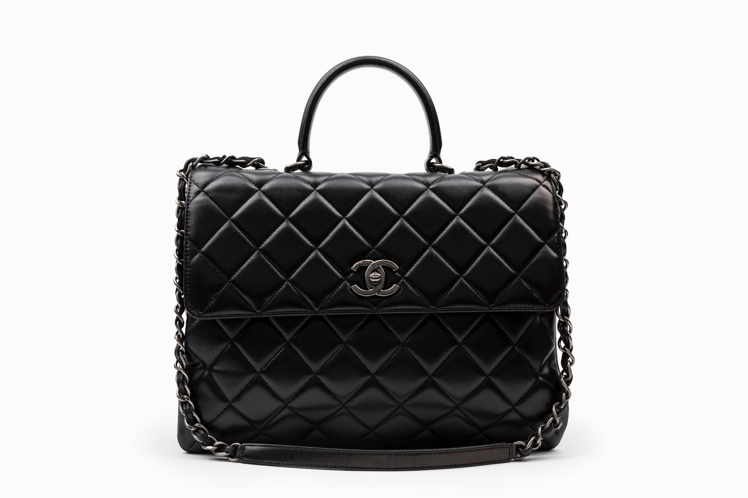 2015 in pelle color nero con tracolla staccabile, dettagli in metallo brunito, cm 32, con sacchetto