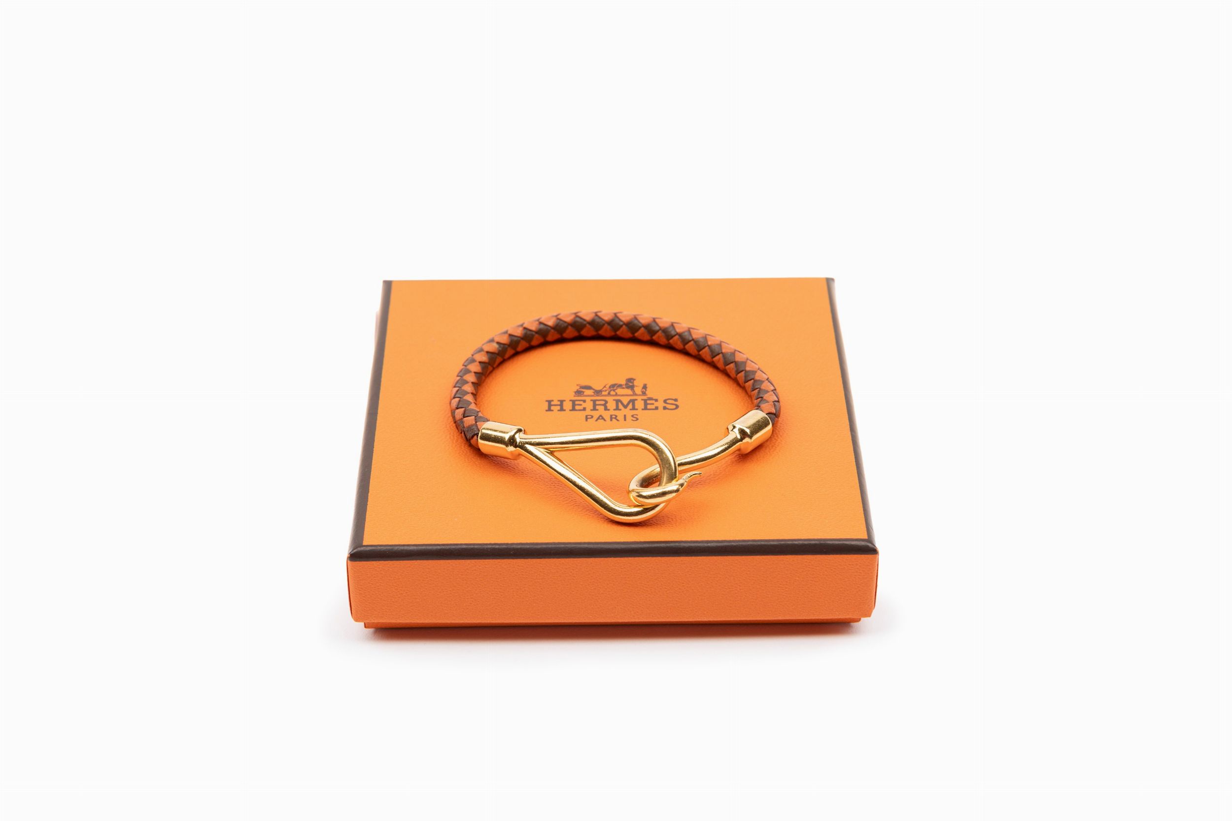 in metallo dorato e pelle intrecciata bicolore, dm cm 5, con sacchetto e scatola