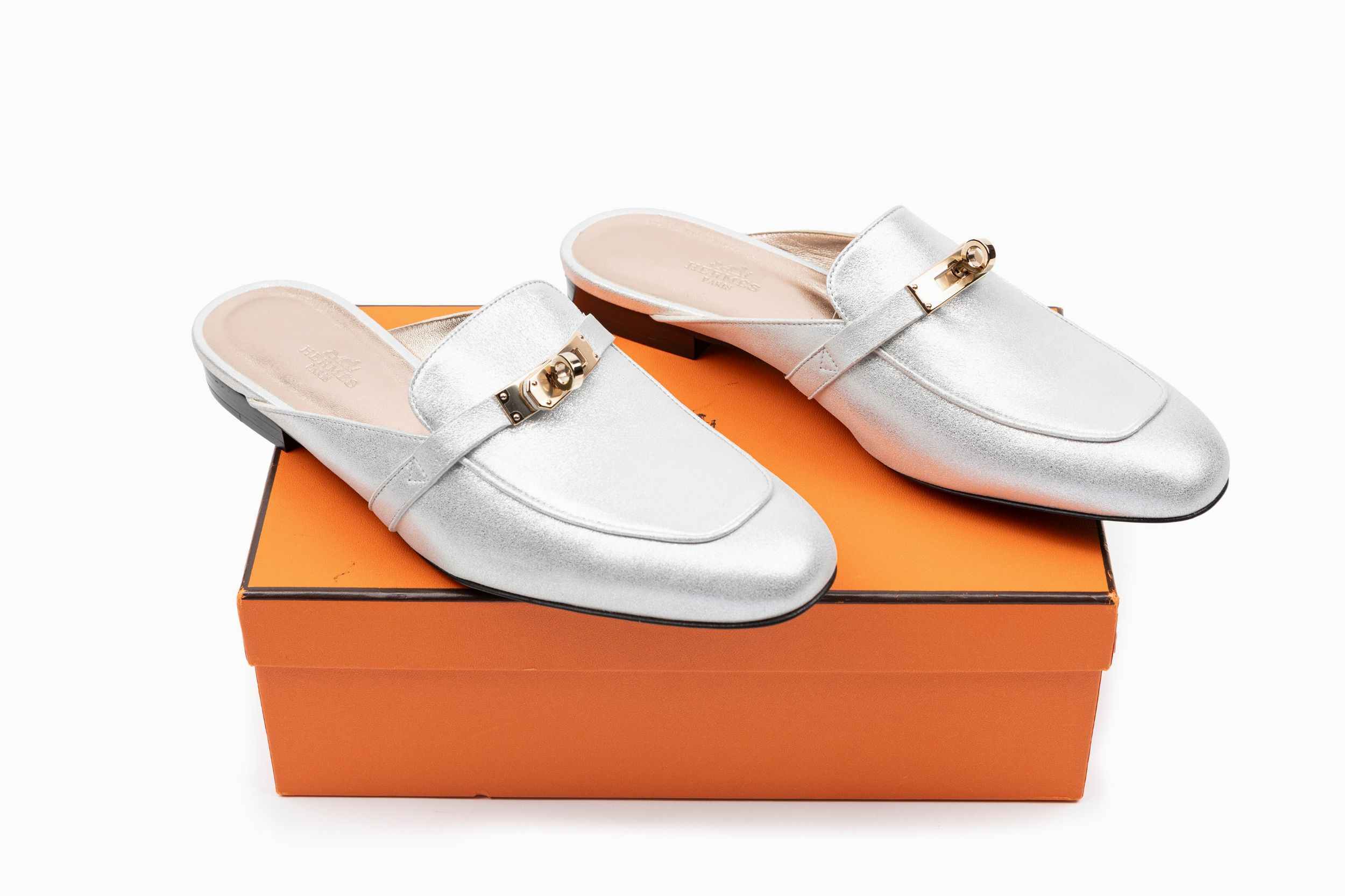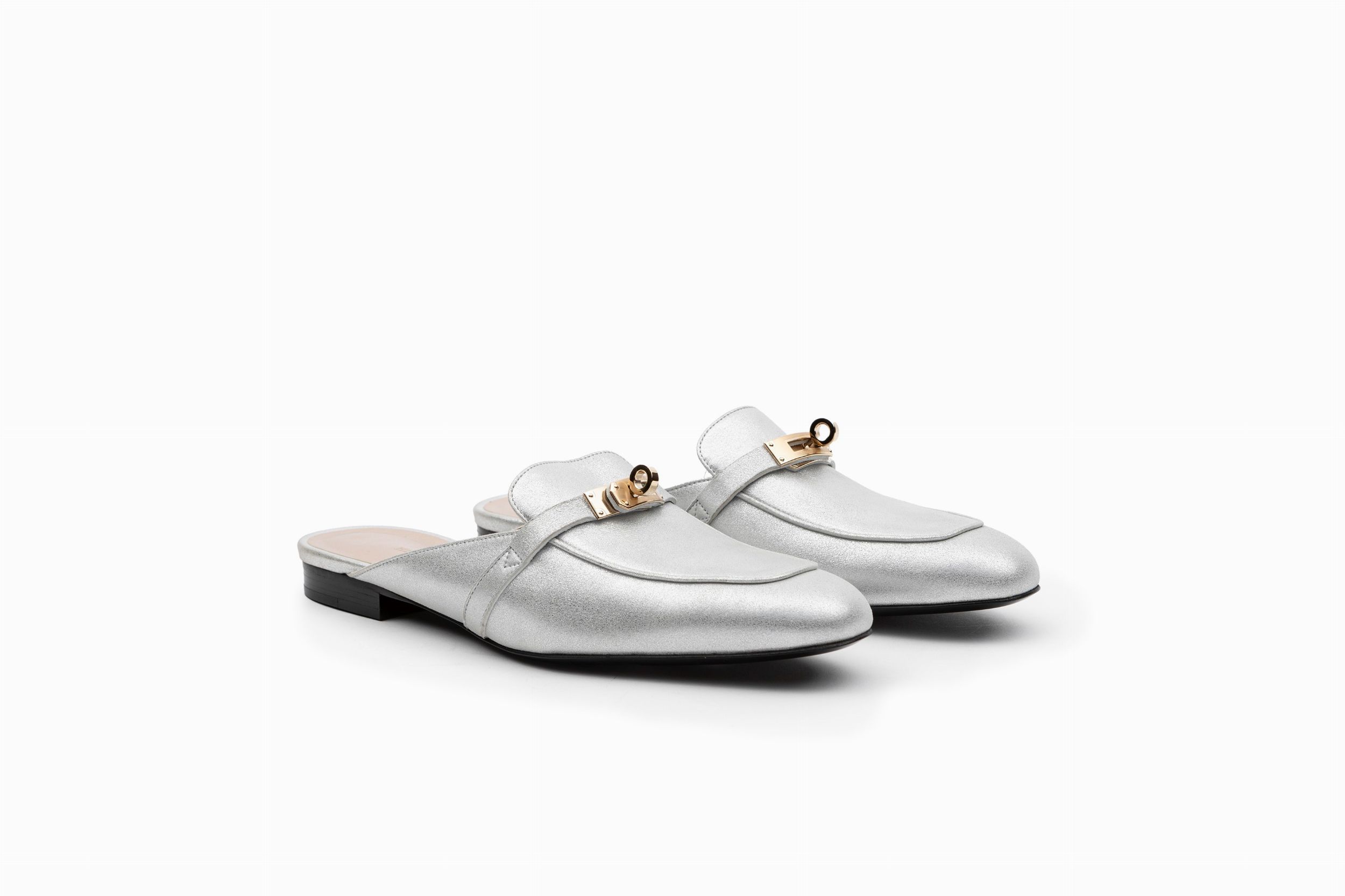 in pelle argentata, dettagli in metallo dorato, misura 39 ½, con sacchetto e scatola (nuove e mai usate)