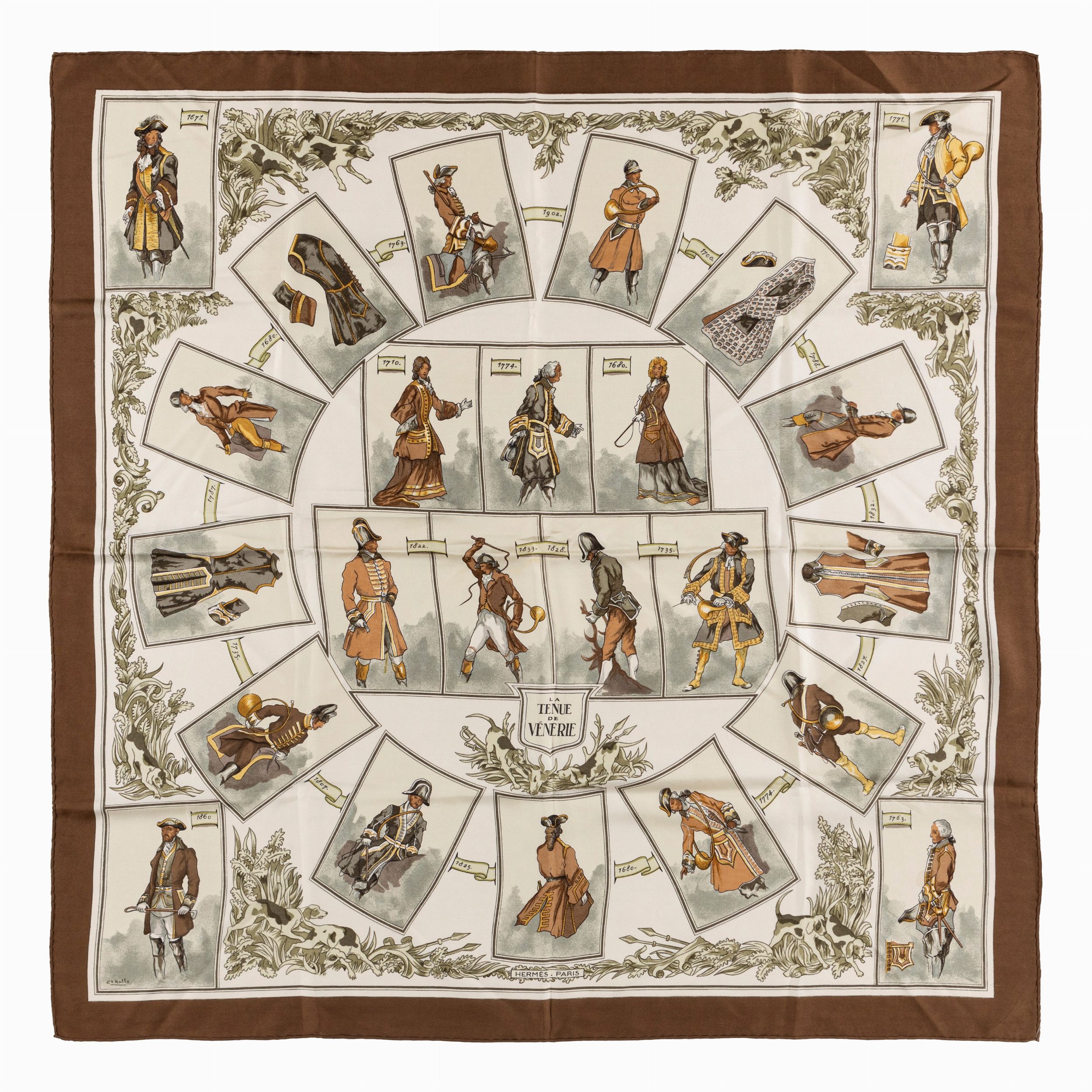 1964 in seta su fondo color panna, bordo color marrone, Charles-Jean Hallo, raro (lievi difetti)