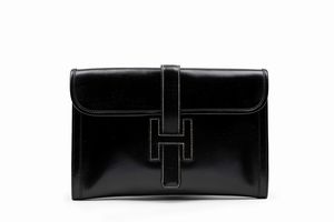 Fine anni 50 in coccodrillo color nero, dettagli in metallo dorato, cm 32, lievi difetti, con sacchetto. Pre [..]