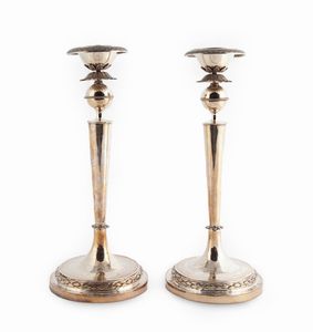 altezza cm 23 - gr. 444 fusto rastremato scandito da più ordini di decorazione incisa in forma di tralci sorretti [..]