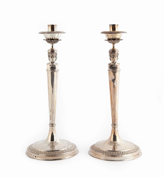 Coppia di candelieri in argento, Roma, Stato Pontificio, dopo il 1815, argentiere [..]