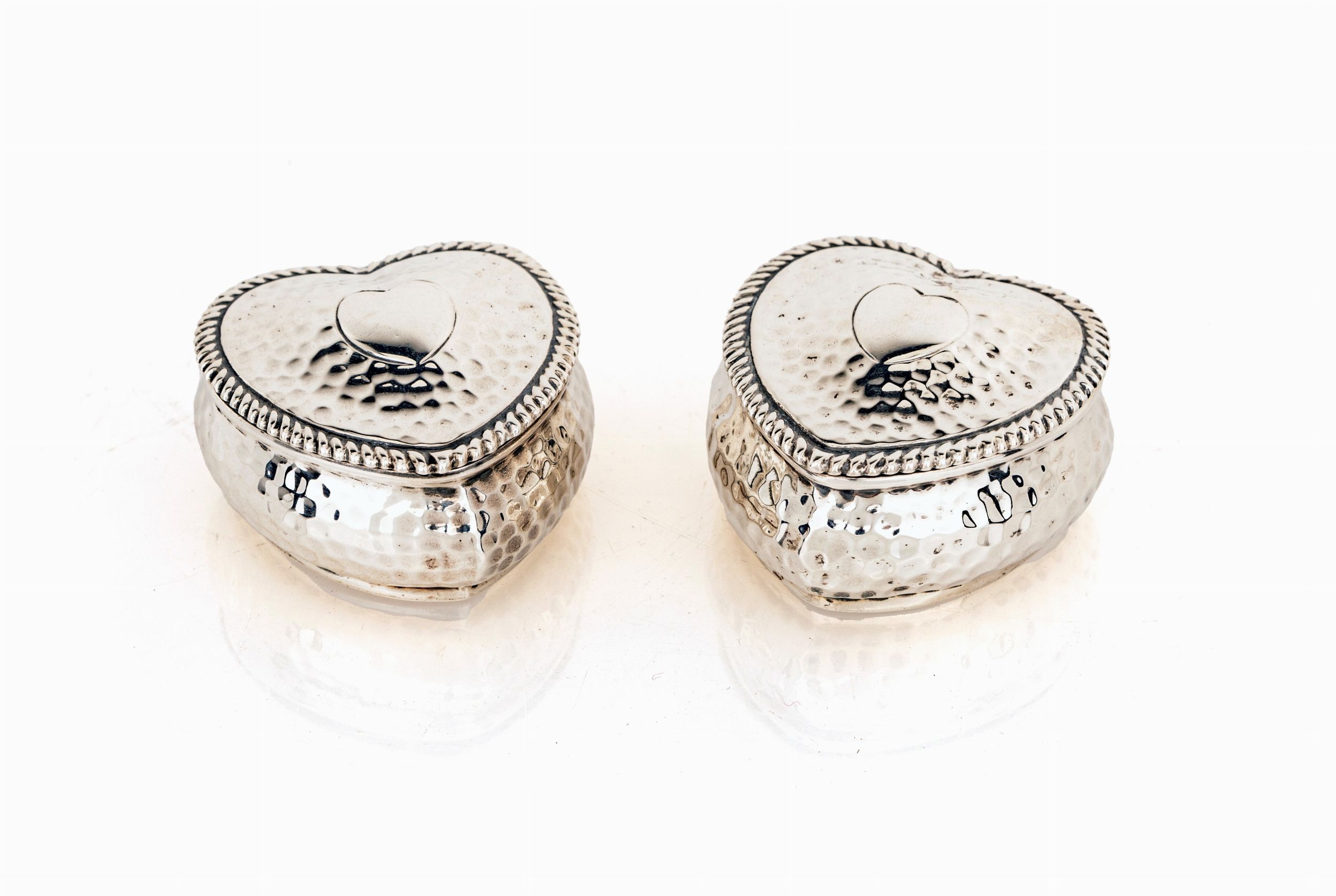 Coppia di scatoline a forma di cuore in argento martellato, Birmingham 1924, argentiere [..]