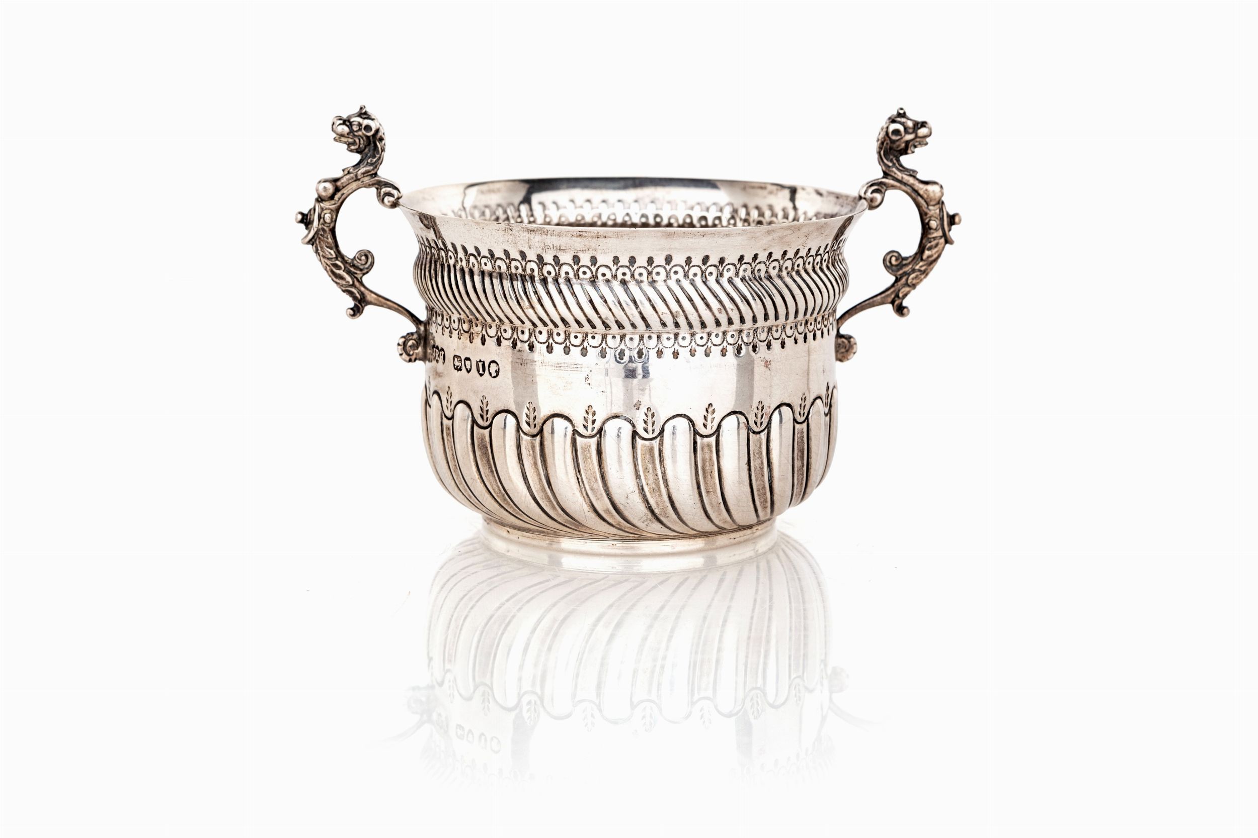 Zuccheriera biansata in argento, Londra 1884, argentiere J. R. H.