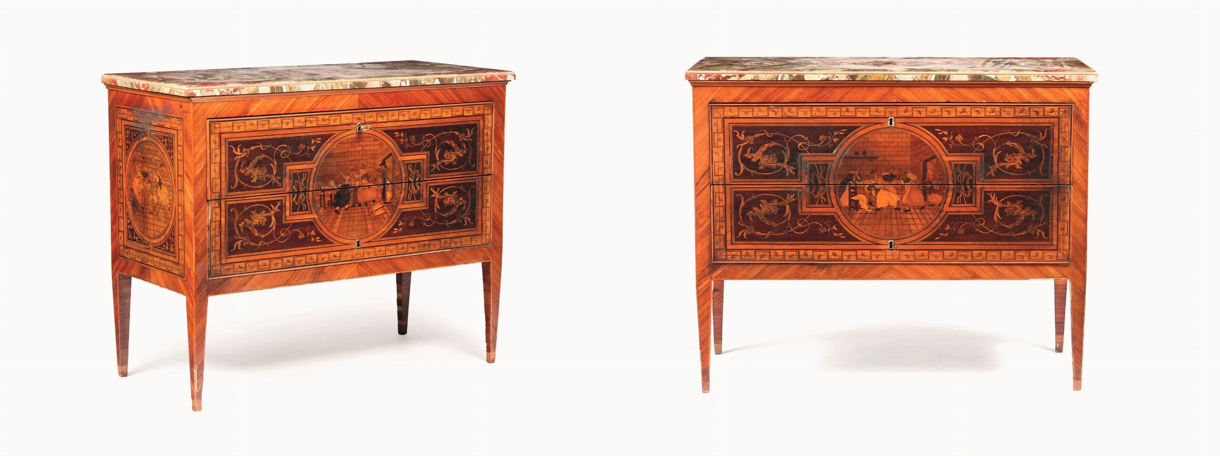 Coppia di coṃ neoclassici a due cassetti. Lombardia fine XVIII secolo