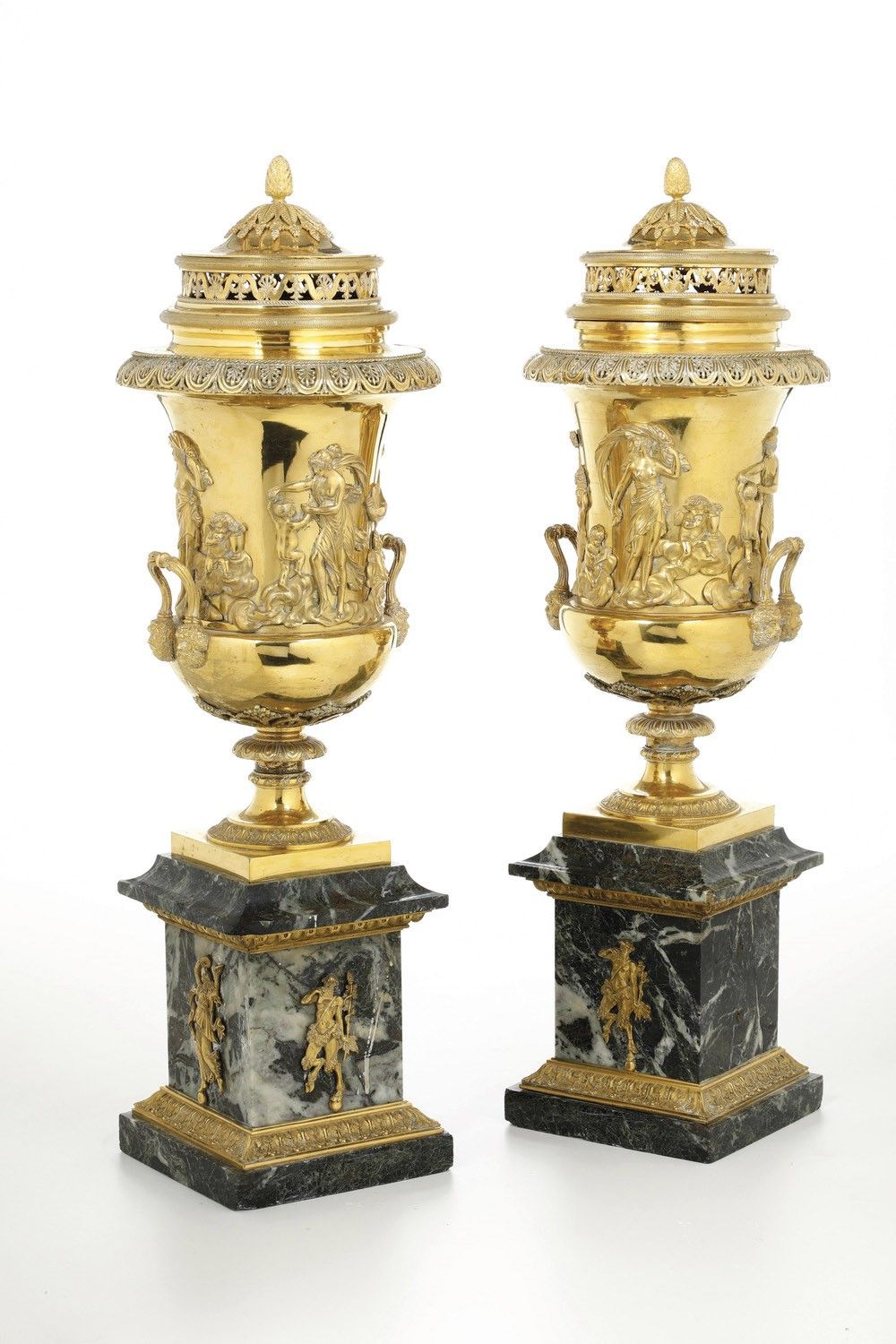 Imponente coppia di bruciaprofumi. Manifattura del XIX-XX secolo