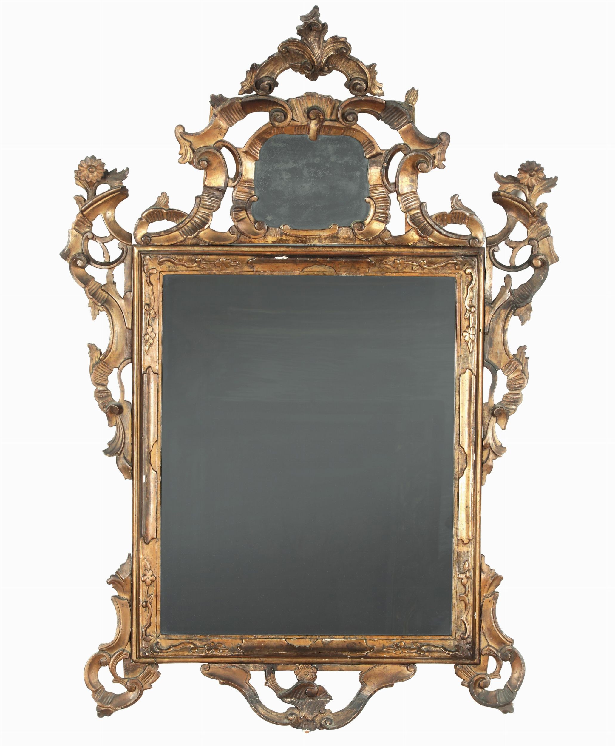 Specchiera in legno intagliato e dorato. Marche, XVIII secolo
