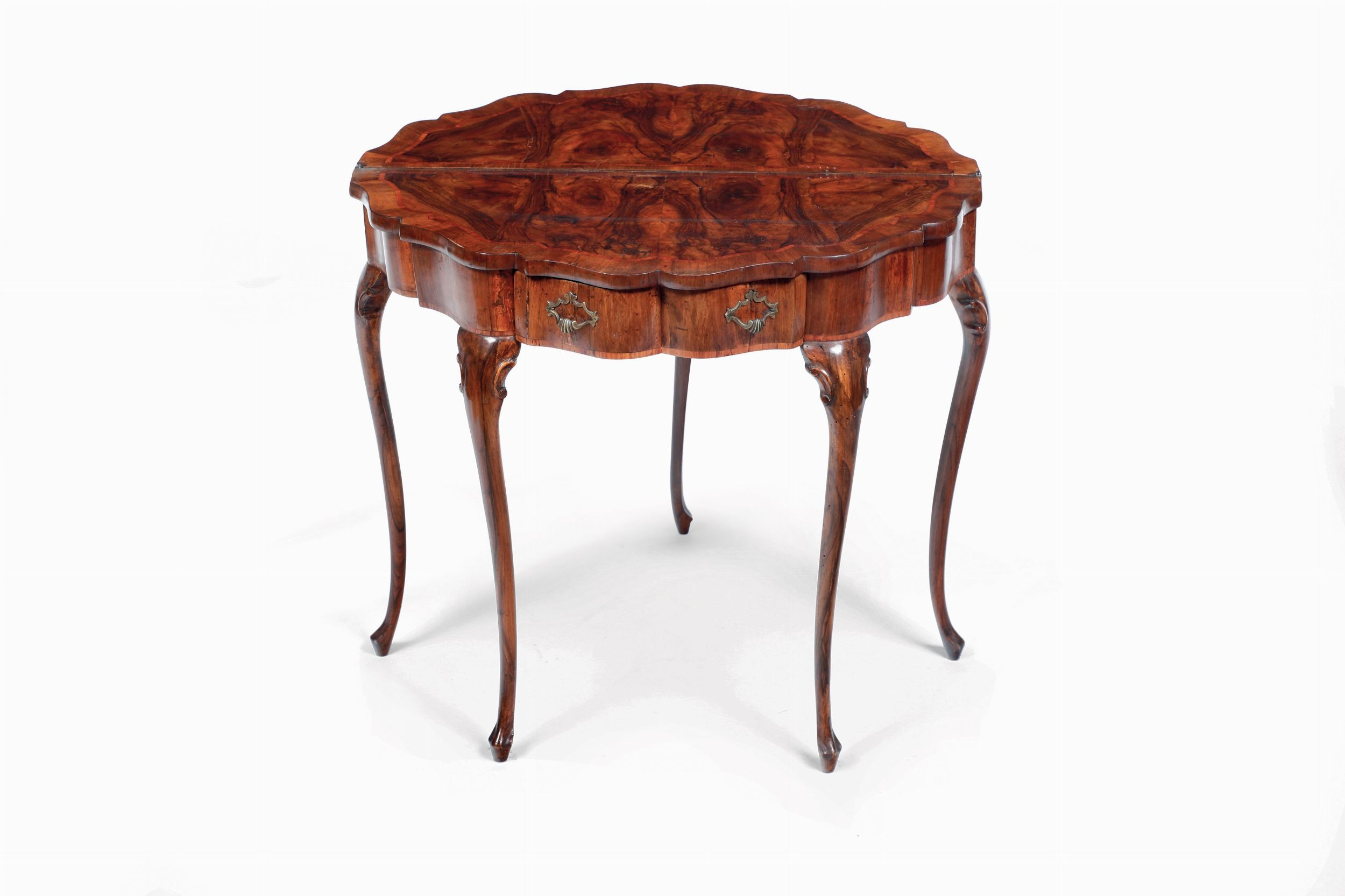 Tavolino da gioco in legno intagliato e legno lastronato. XVIII secolo