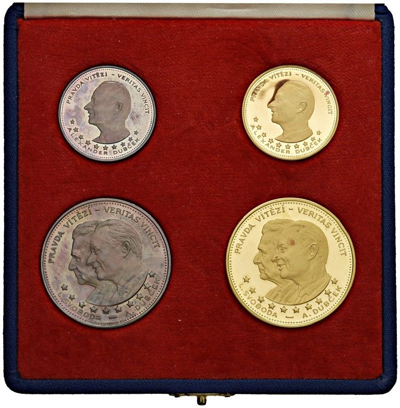 CECOSLOVACCHIA. REPUBBLICA SOCIALISTA (1960-1990). ZECCA DI KREMNITZ. SET COMPOSTO DA QUATTRO MONETE IN ORO E ARGENTO (10 E 5 DUCATI 1968) DELLA SERIE “DUCATI DI PRAGA” IN ASTUCCIO ORIGINALE E CERTIFICATO DI EMISSIONE N. 1309 Au 986 tot. gr. 52,50; Ar 1.000 tot. gr. 37,90 Molto rare FS Very rare Proof (4)