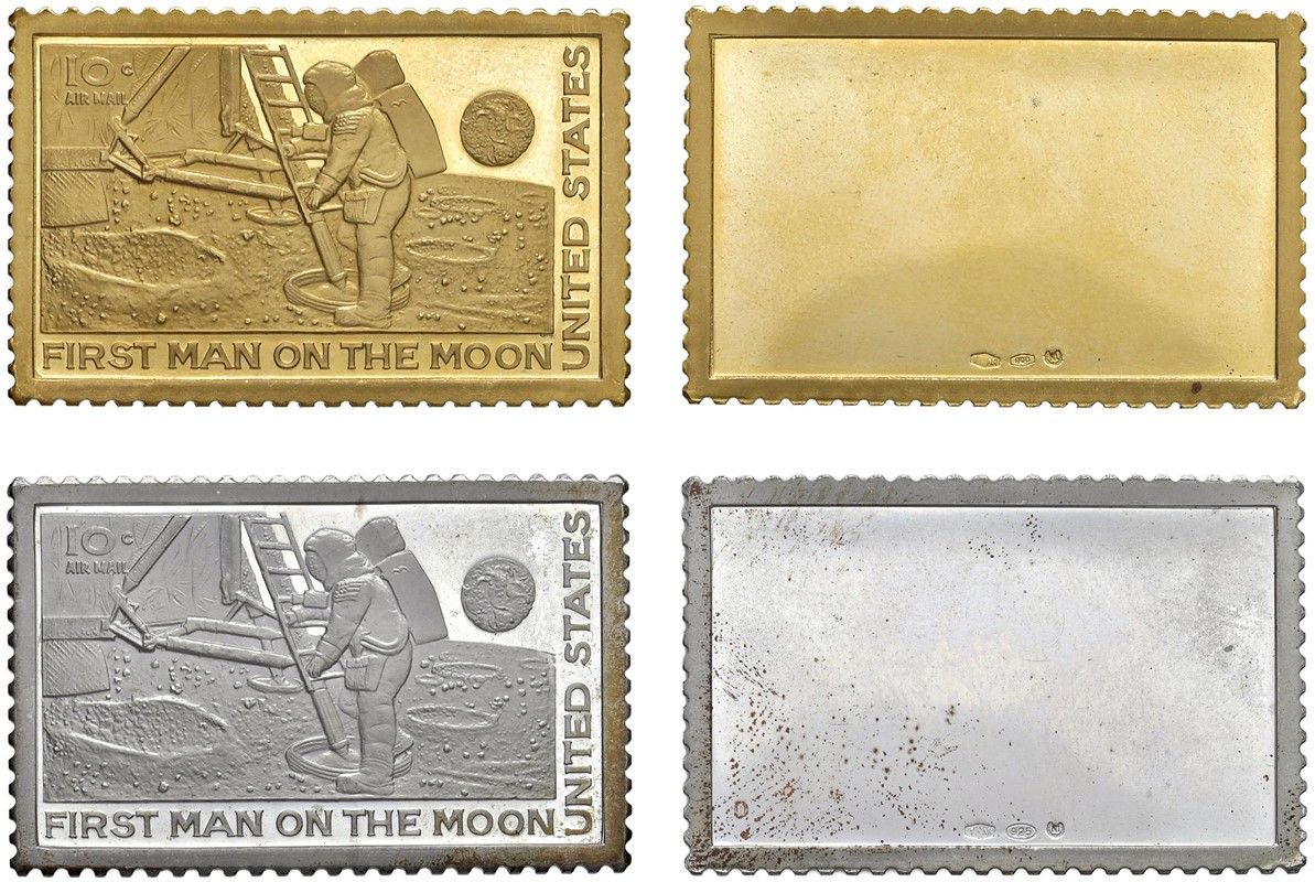 DUE FRANCOBOLLI CHE COMMEMORANO LA SPEDIZIONE DELL’UOMO SULLA LUNA