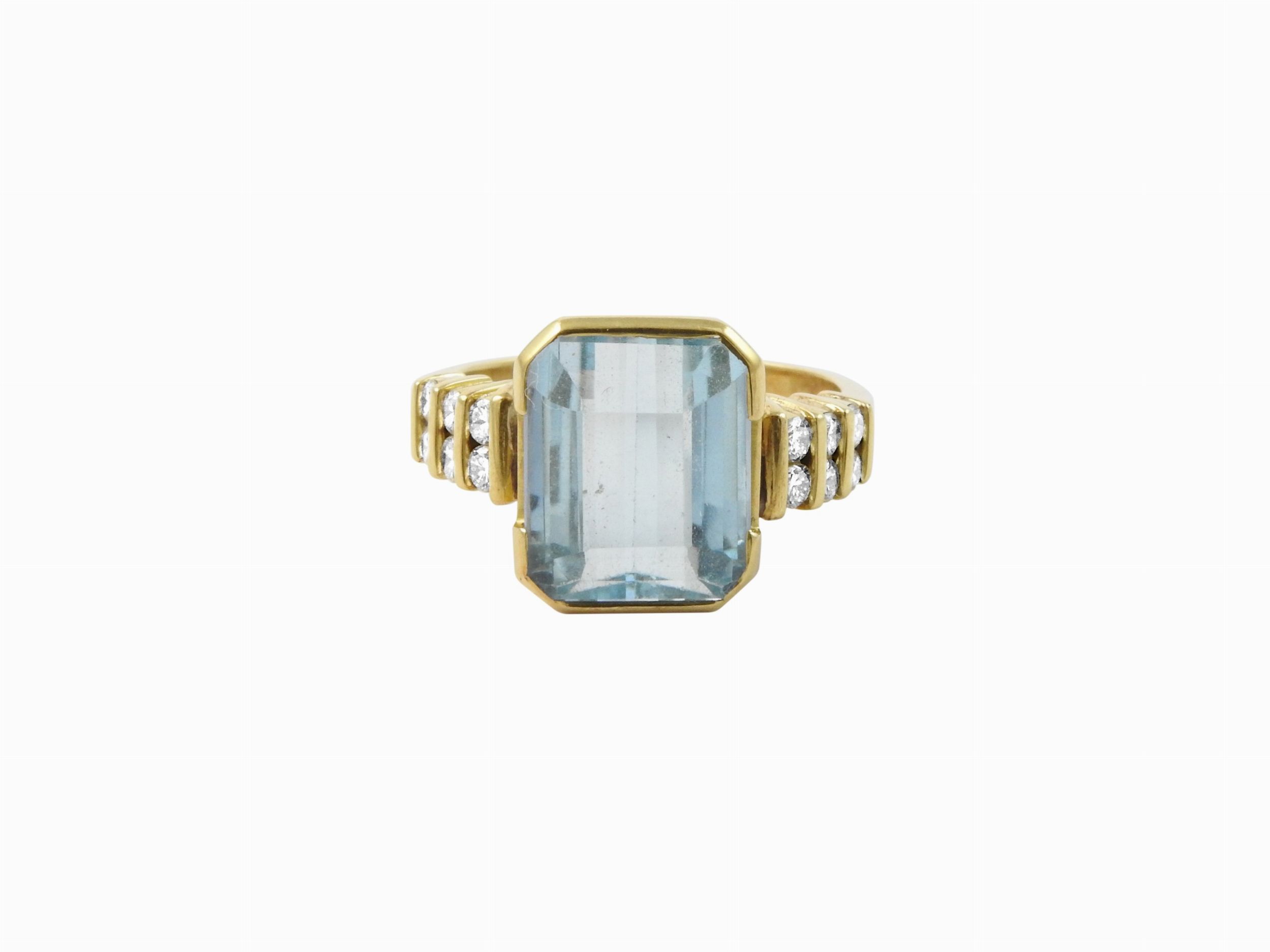 Anello in oro giallo con diamanti e acqumarina