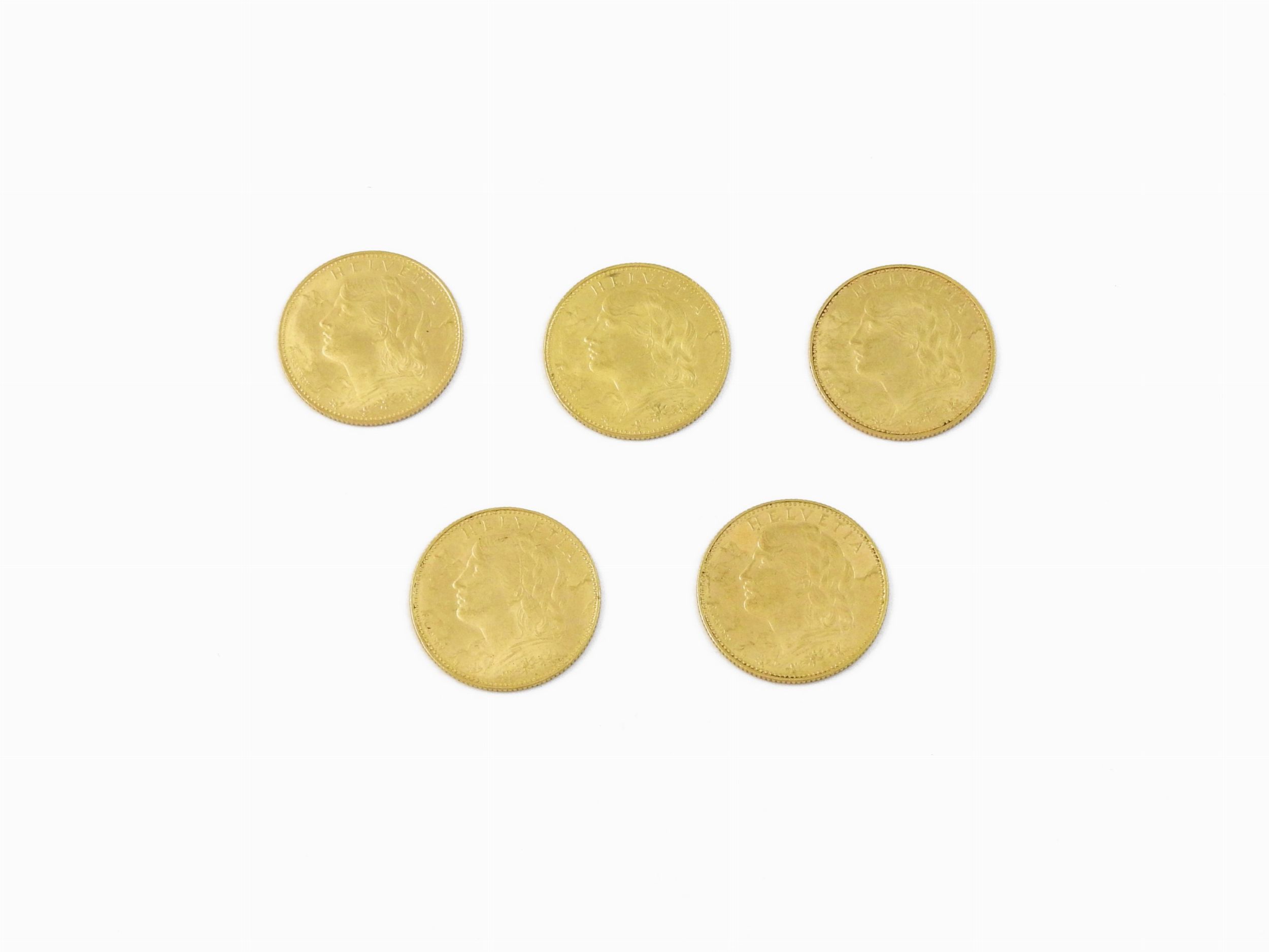 Svizzera, 1913 (2), 1915 (2), 1922 Au 900/1000, BB (5)
