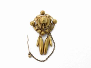 Spilla con pendenti in oro giallo