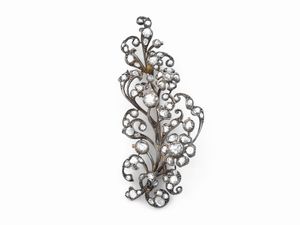 Spilla in oro giallo e argento con diamanti