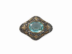 Spilla in oro a basso titolo e argento con pasta vitrea azzurra