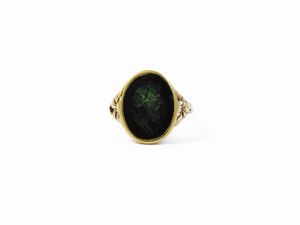 Anello in oro giallo con intaglio su diaspro