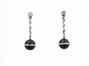 Orecchini pendenti in oro giallo e argento con diamanti e onici