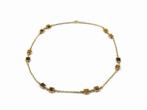 Collana in oro giallo e quarzi varietà occhio di tigre