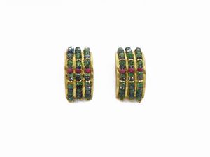Orecchini in oro giallo con rubini, zaffiri e smeraldi