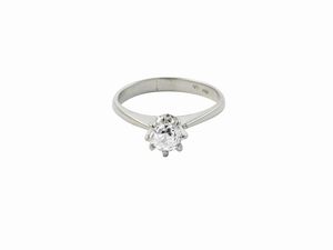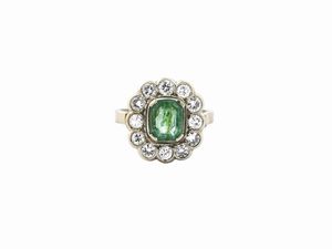 Anello in oro bianco e giallo con diamanti e smeraldo