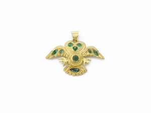 Collana di smeraldi con fermezza in oro e argento con diamanti e smeraldo