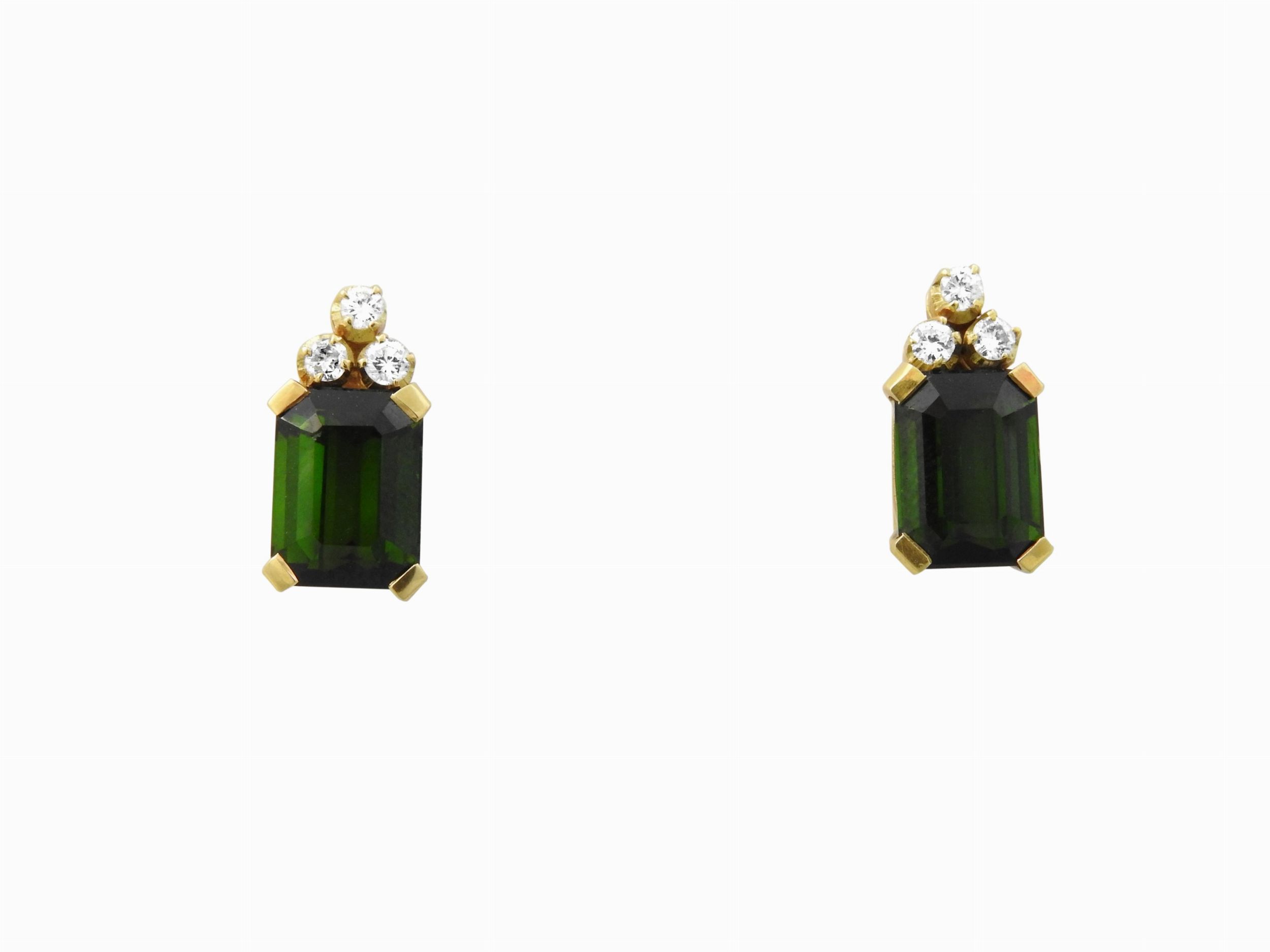 Orecchini in oro giallo con diamanti e tormaline verdi