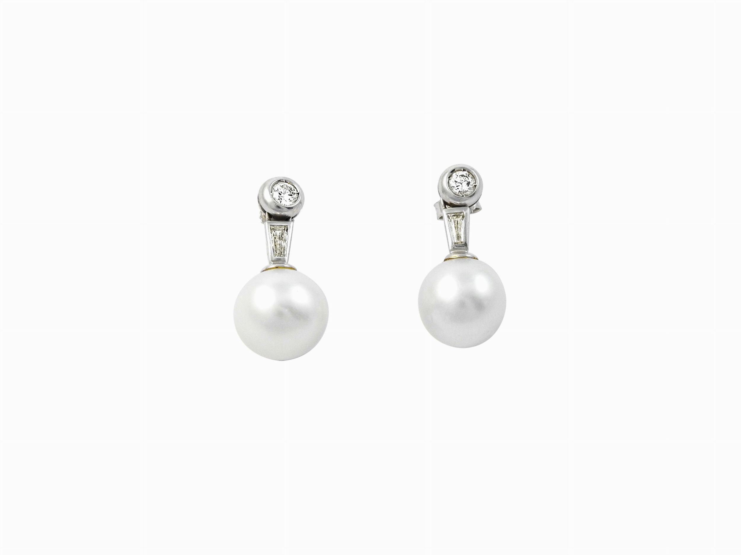 Orecchini pendenti in oro bianco con damanti e perle South Sea bianche