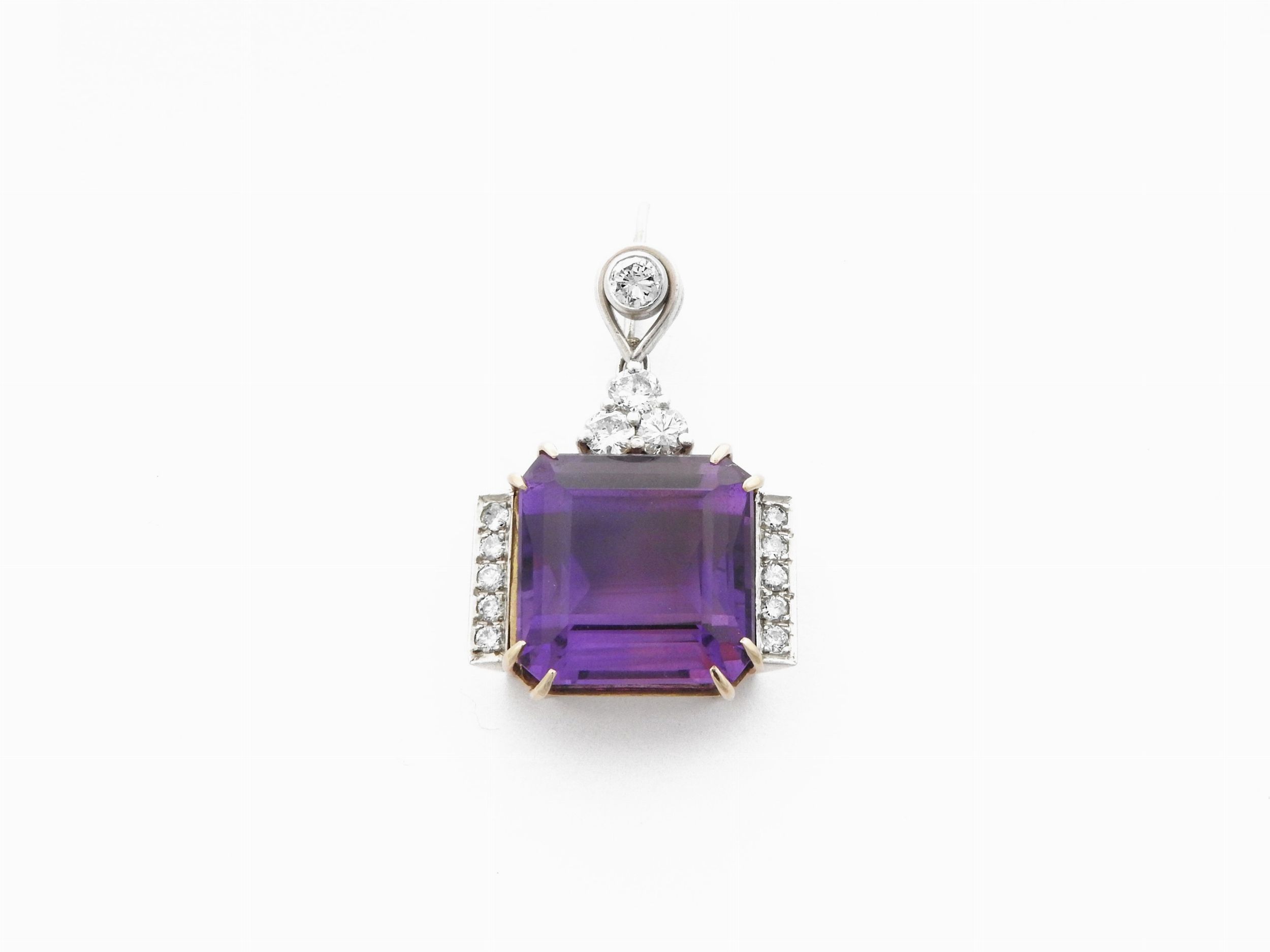Pendente in oro bianco e giallo con diamanti e quarzo varietà ametista