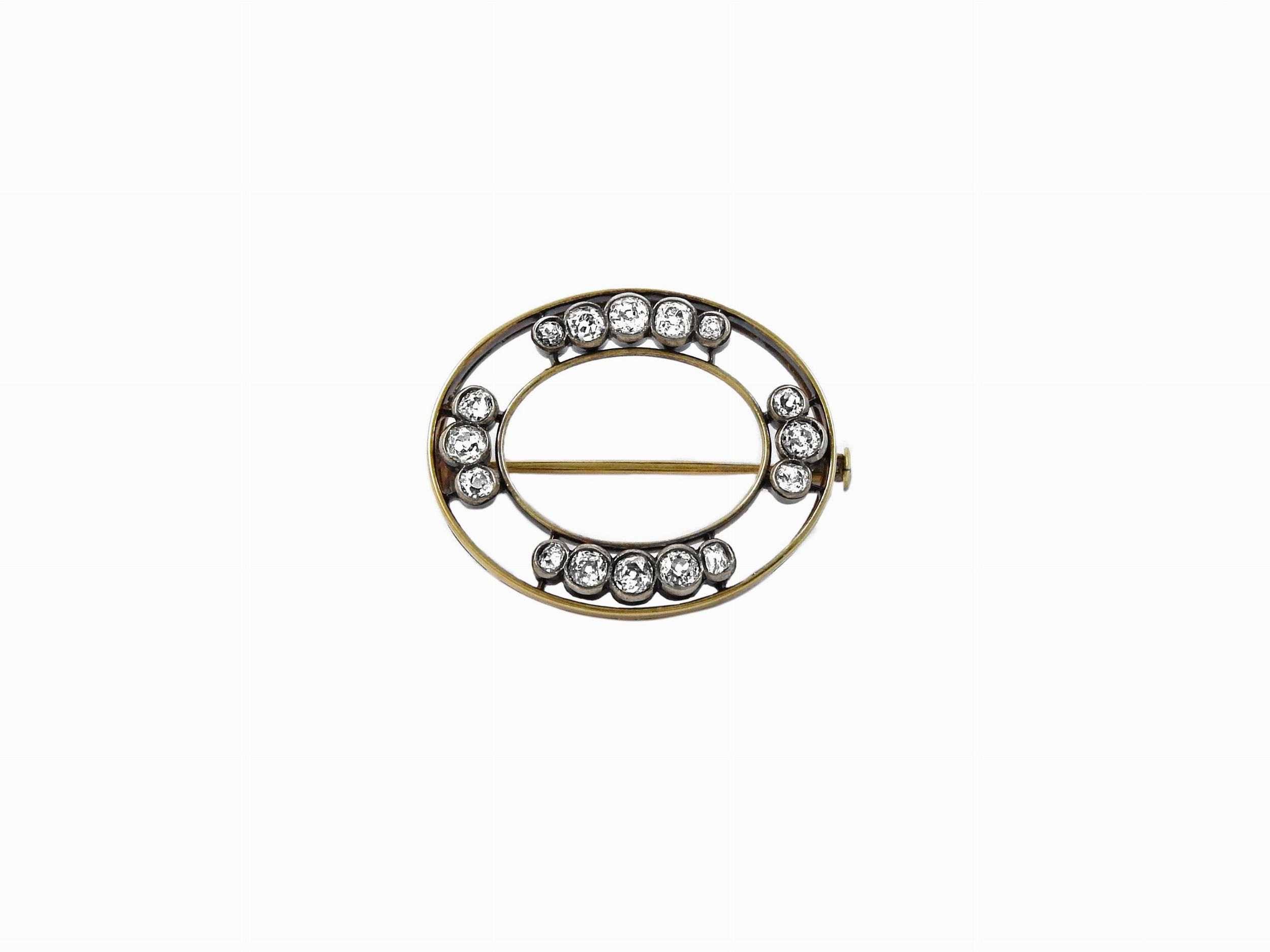 Spilla in oro giallo e argento con diamanti