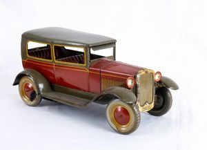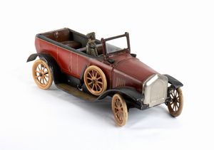 Latta, cm.32 1920s Limousine aperta con autista in livrea. Latta litografata, ruote a raggi in piombo con pneumatici [..]