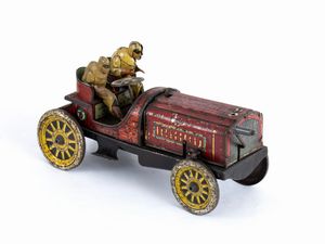 cm.20 Auto da corsa tipo Gordon Bennet, con due personaggi pilota e copilota, ispirata dalla . Latta litografata, [..]